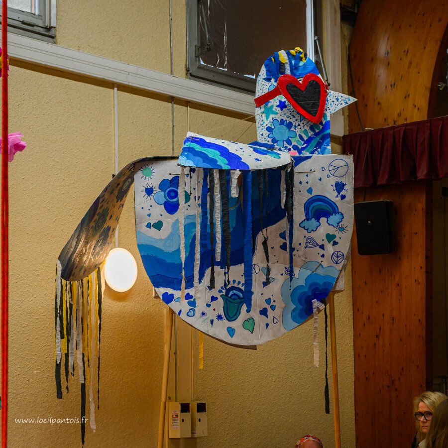 On avait imaginé un beau soleil, un magnifique défilé dans les rues derrière la fanfare et la mascotte, des enfants qui courent.Mais le dieu de la météo en a décidé autrement et la fête eut lieu dans la salle polyvalente, un peu plus intime, un peu plus bruyante...mais qu'importe puisque la fête eut lieu