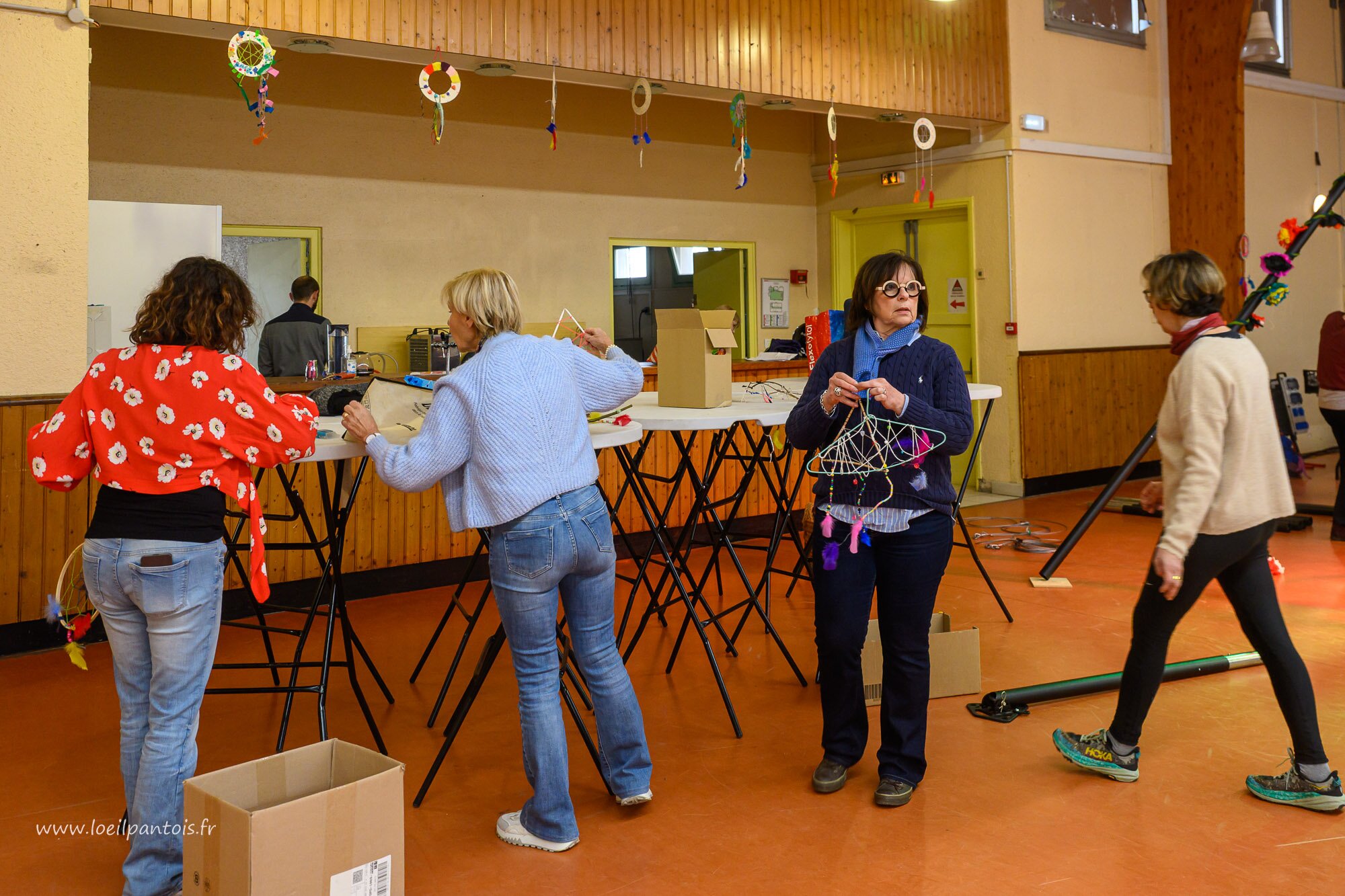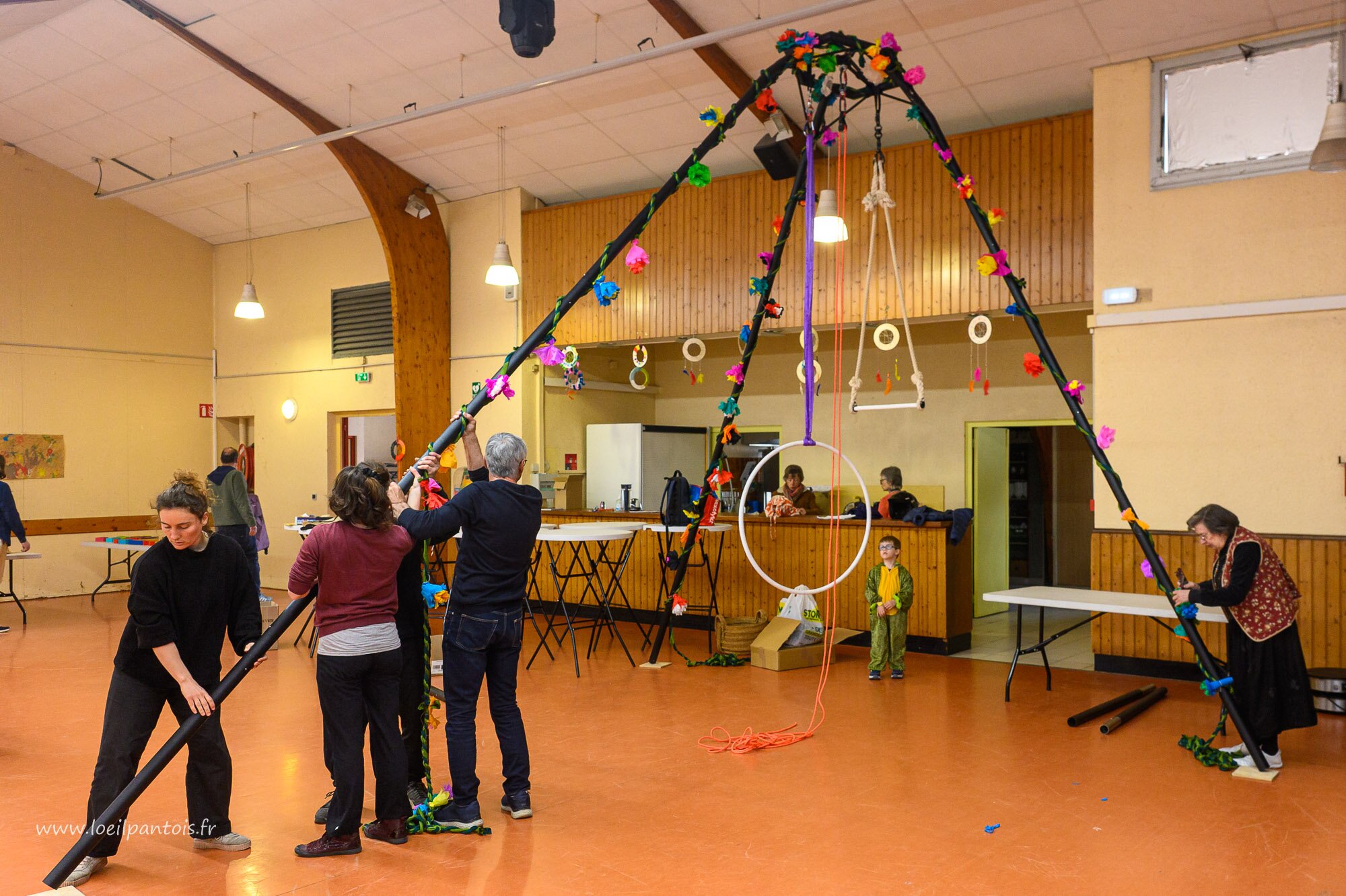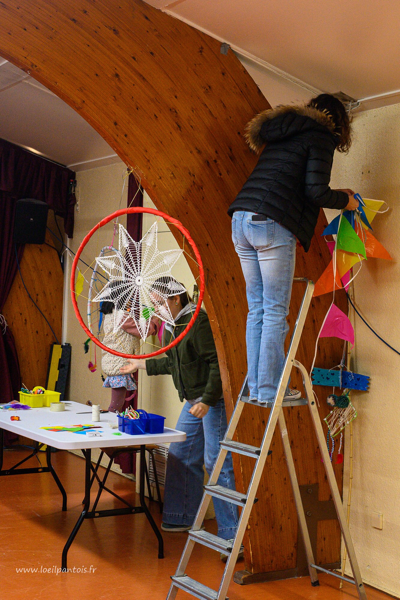 Ils étaient tous là, administrateurs, salariés, artistes, bénévoles, le Sou des écoles et mêmes quelques jeunes testeurs de jeux. Ils ont chargé, tiré, poussé, collé, réglé pour que tout soit prêt pour 15h. Certains avaient travaillé longtemps à l'avance sur le projet, d'autres, hors du champ photographioque, ont rangé, porté, trié, nettoyé. Vous ne les avez peut-être pas vus, mais vous leur devez la fête.