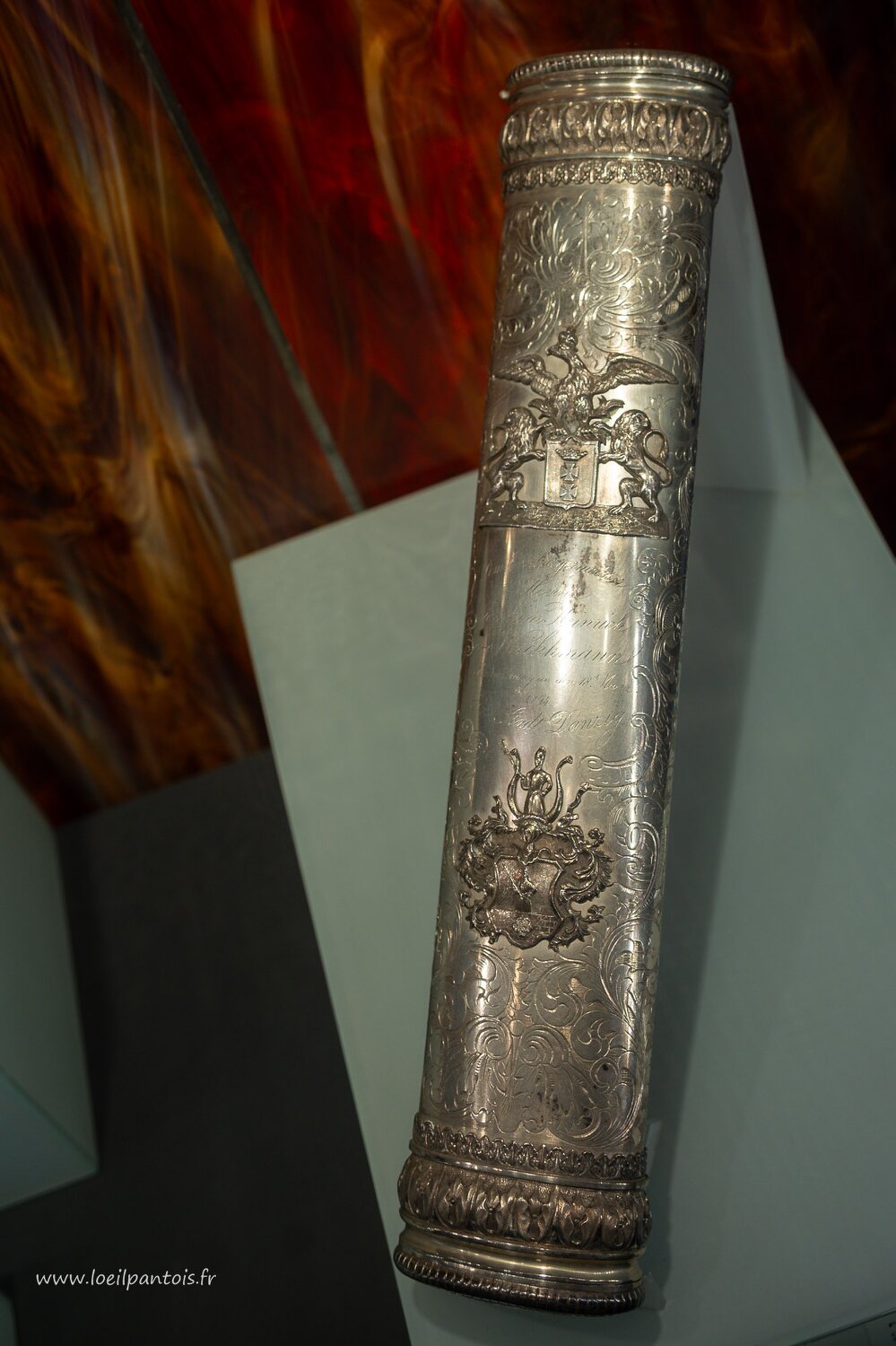 Musée national, étui pour cédrat(etrog), argent ciselé, 1760-1766, Fruit apporté de Palestine par les juifs et utilisé pour la fête de Souccot