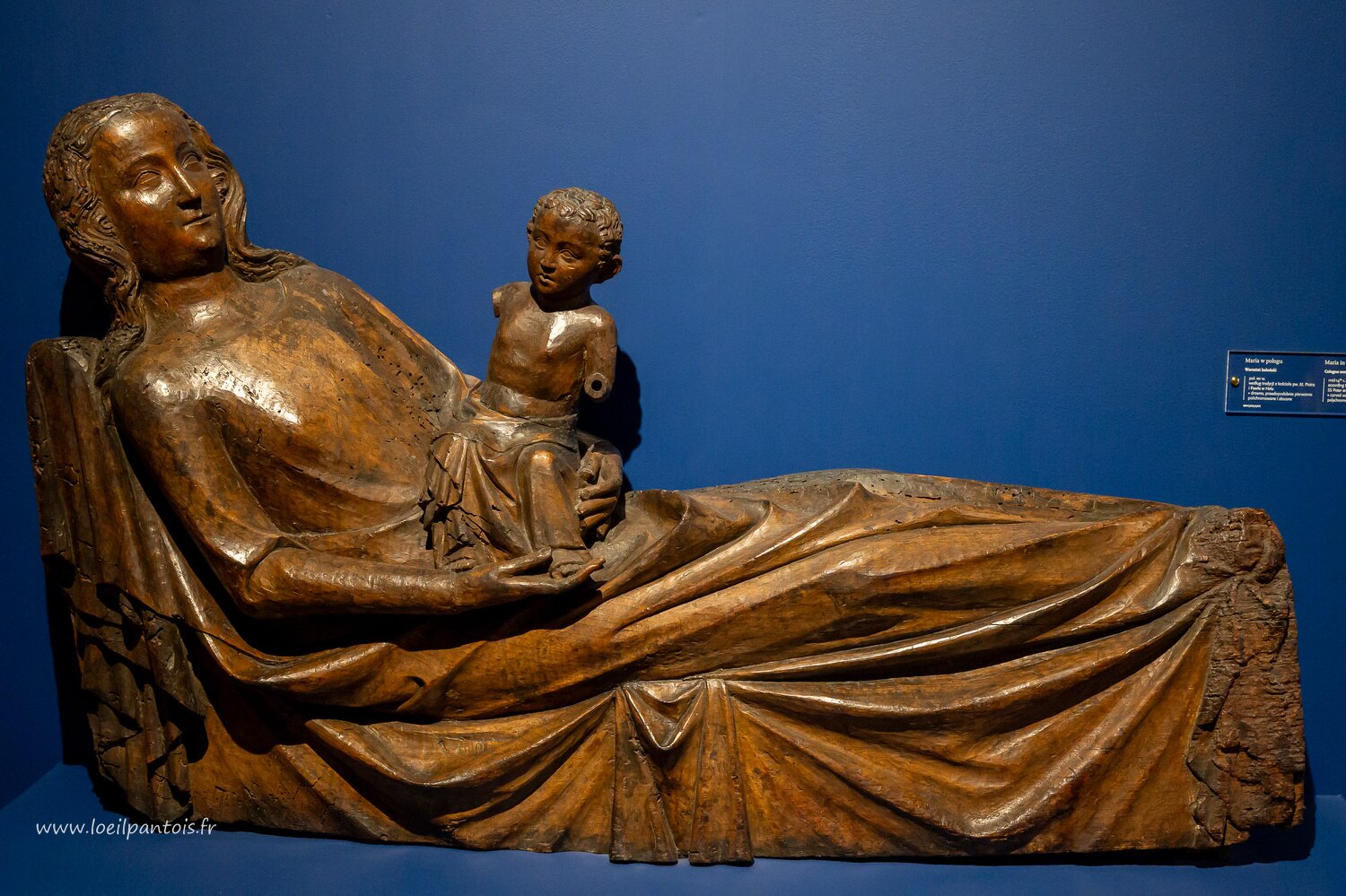 Musée national, Marie en couches, Atelier de Cologne, XIVe s , sans doute doré et polychrome à l'origine.