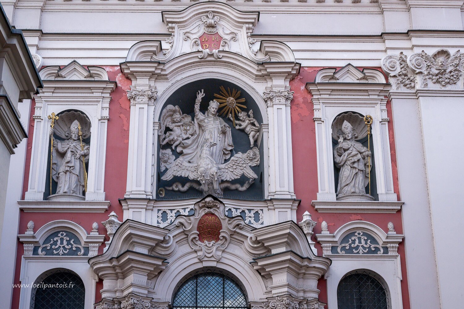 Basilique Notre Dame du perpétuel secours, Sainte-Marie-Madeleine et Saint-Stanislas. Au centre St Ignace de Loyola tenant un bouquet de serpents, avec, à ses…