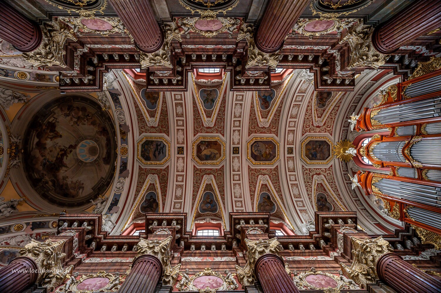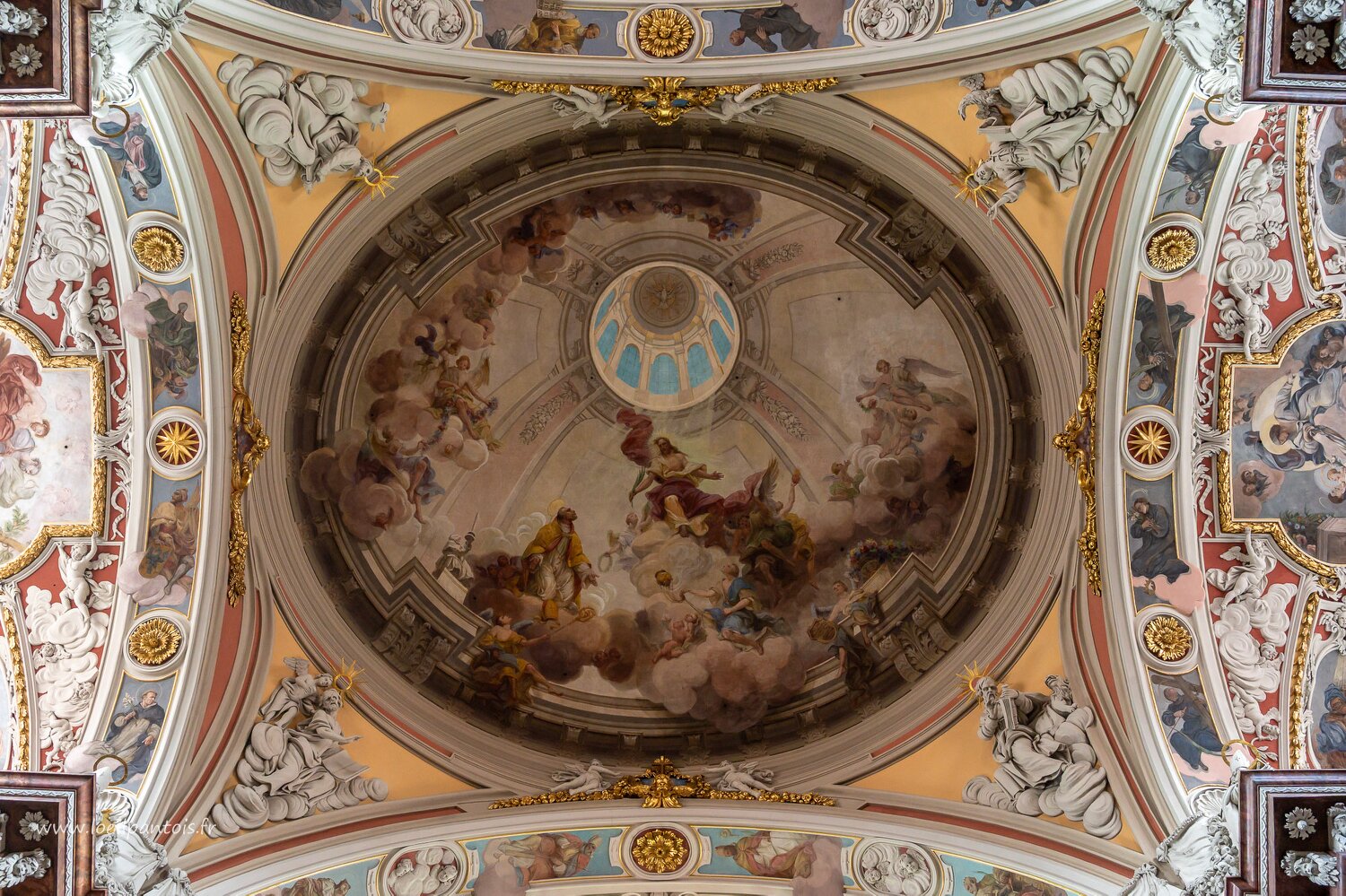 Basilique Notre Dame du perpétuel secours, coupole illusoire peinte en 1949 par Stanisław Wróblewski pour remplacer l'apothéose de la Ste trinité, détruite.