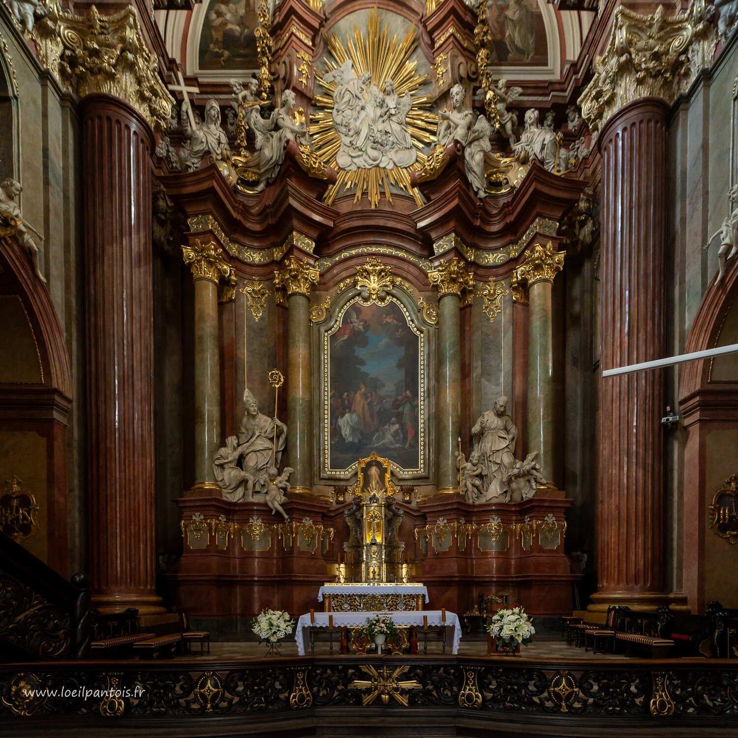 Basilique Notre Dame du perpétuel secours,le maitre autel de Pompeo Ferrari (1660-1736). A gauche statue de la résurrection de Piotrowin par St Stanislas (même…