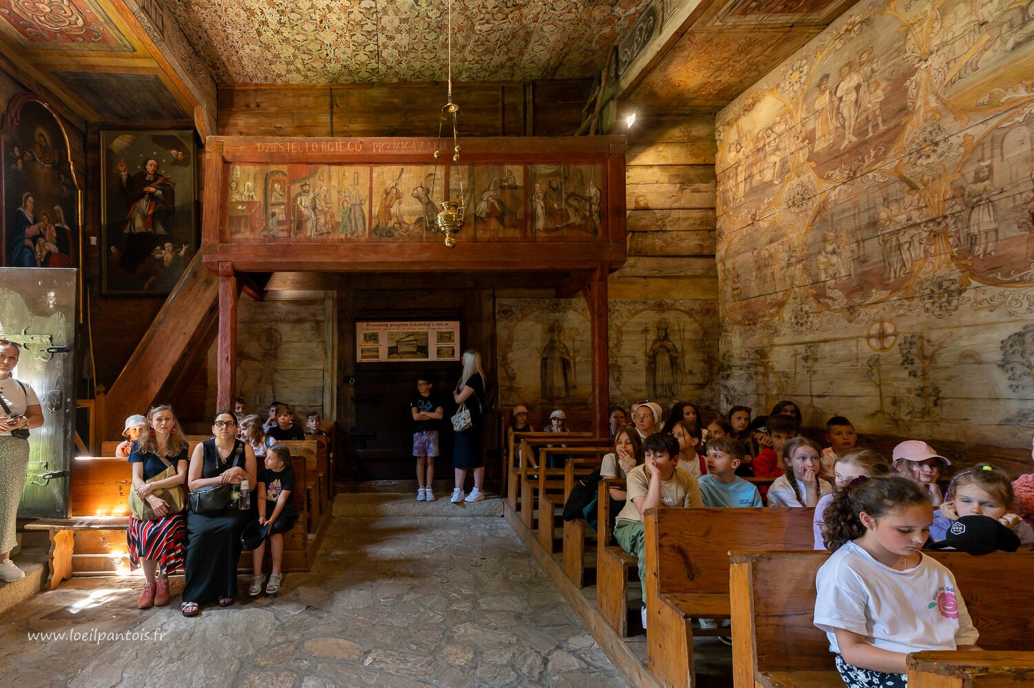 Eglise St Léonard (XVe s, classée UNESCO) à Lipnica Murowana, vue sur la tribune qui rappelle les 10 commandements