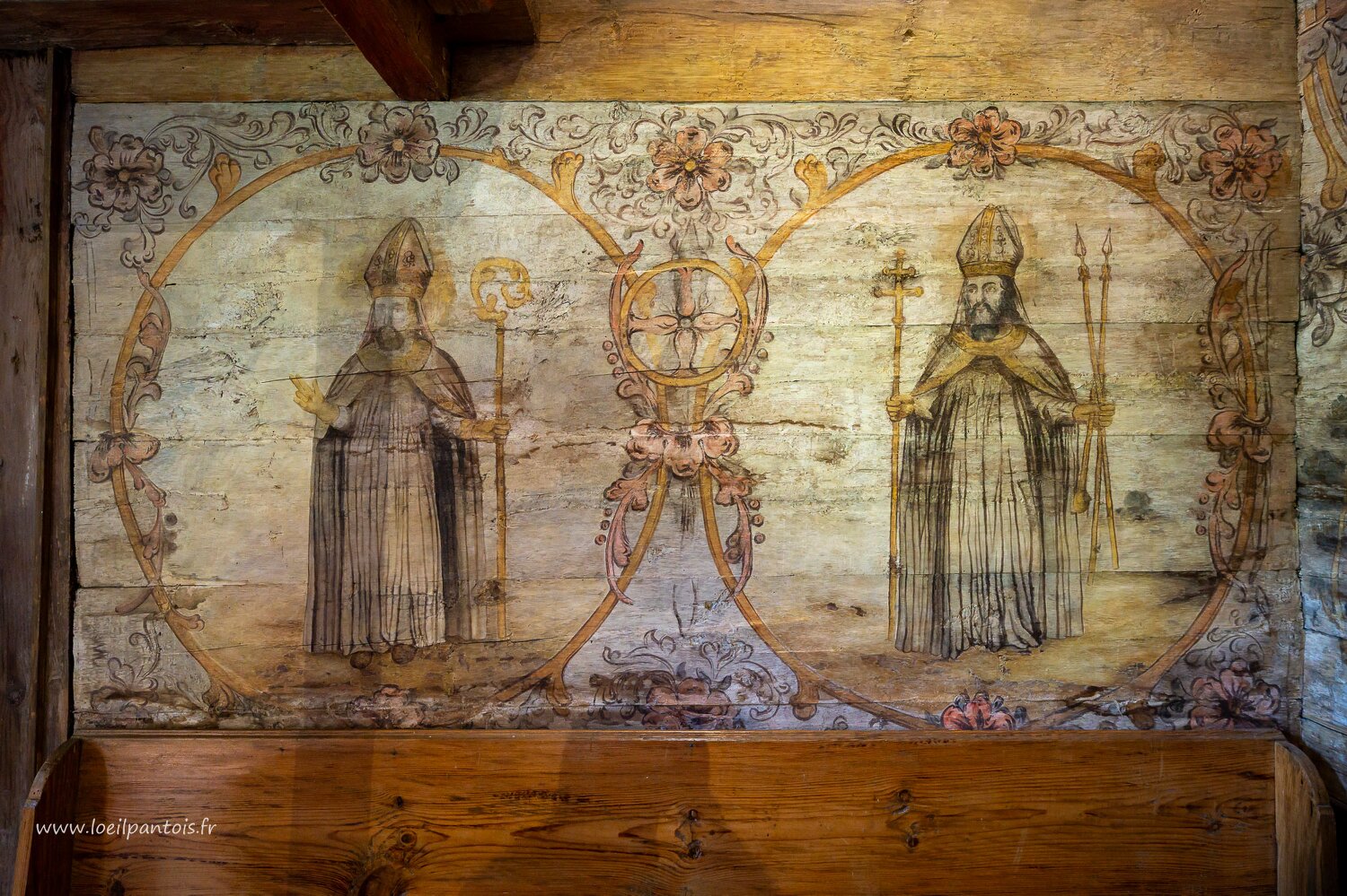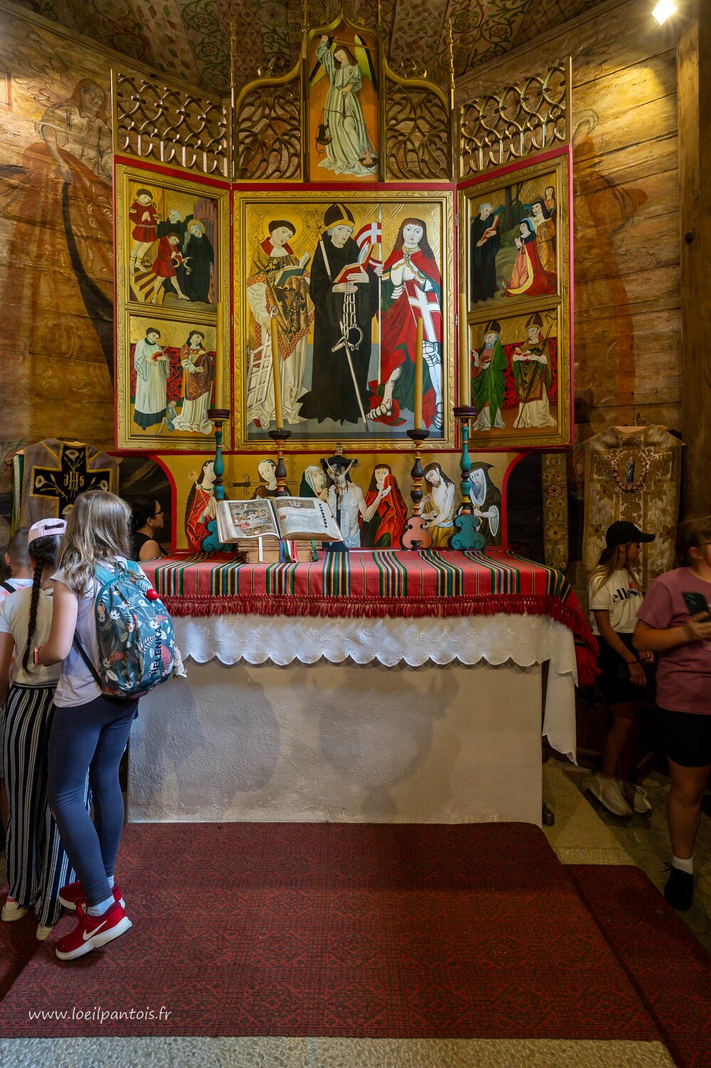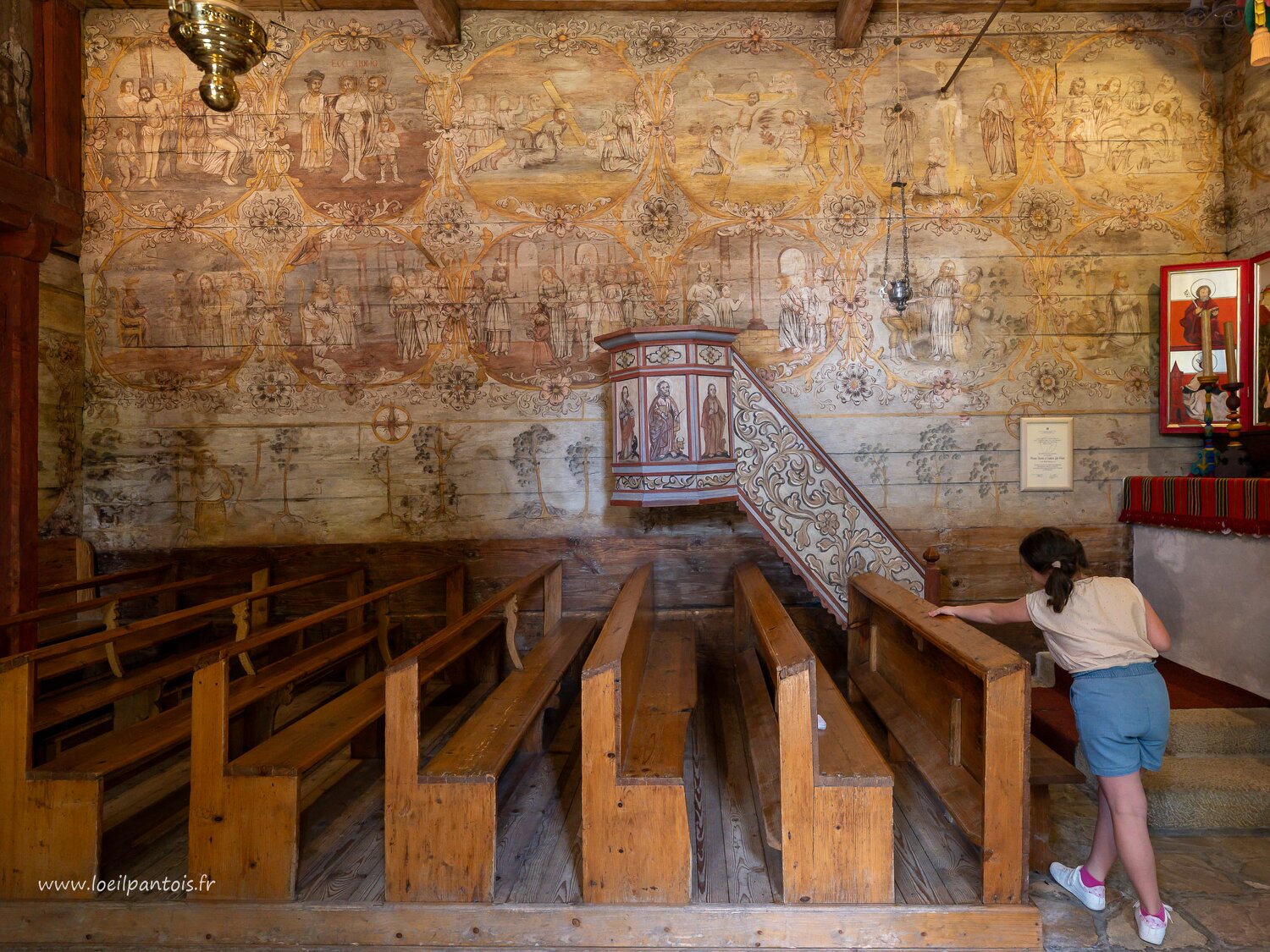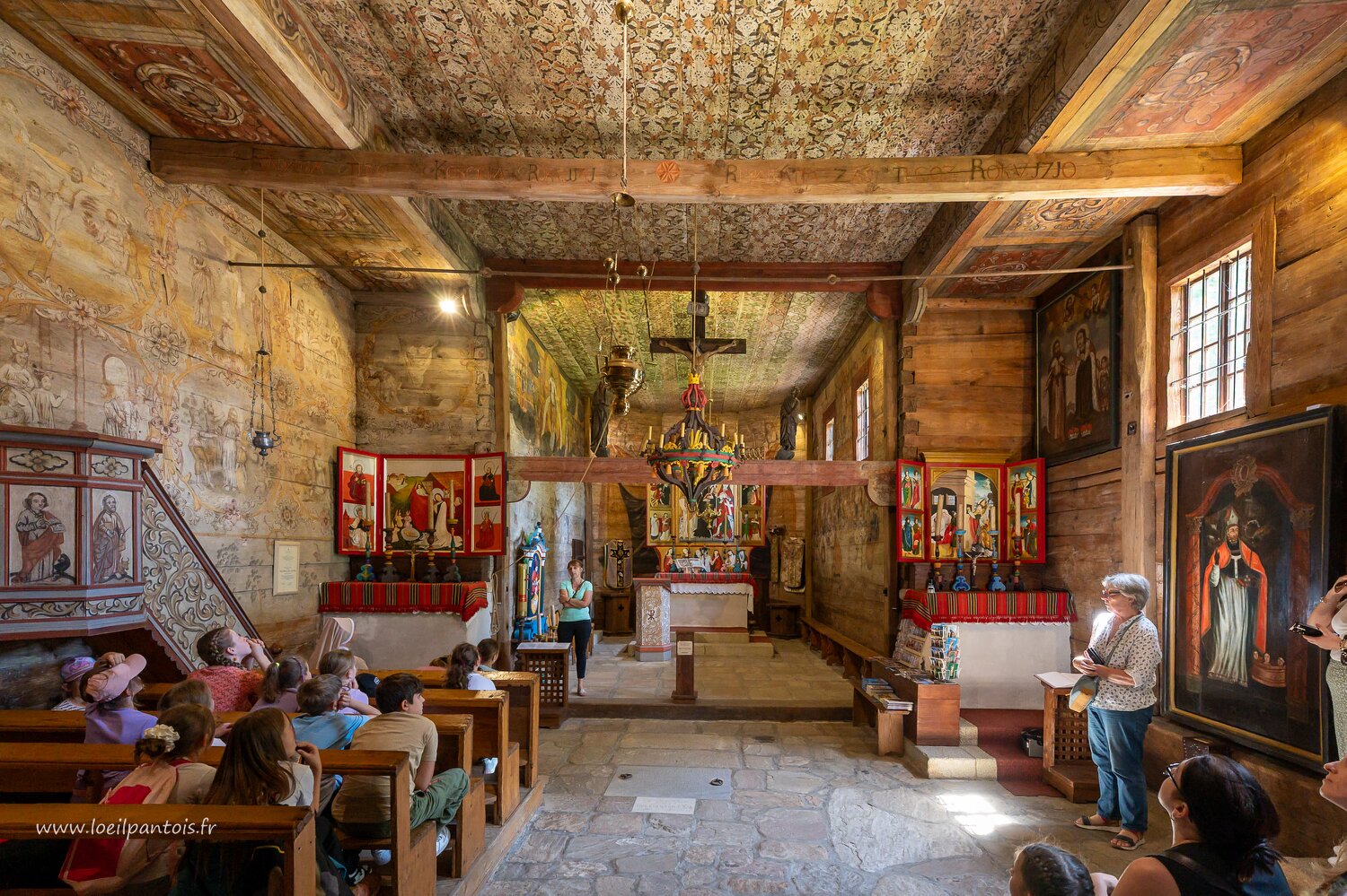 Eglise St Léonard (XVe s, classée UNESCO) à Lipnica Murowana: fond d'église, personnages non identifiés