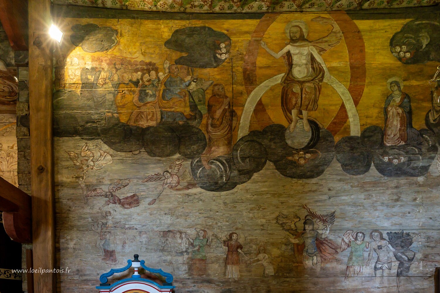 Eglise St Léonard (XVe s, classée UNESCO) à Lipnica Murowana. Les peintures s'échelonnent du XV au XVIIIe s et celles-ci représentent la passion du Christ.