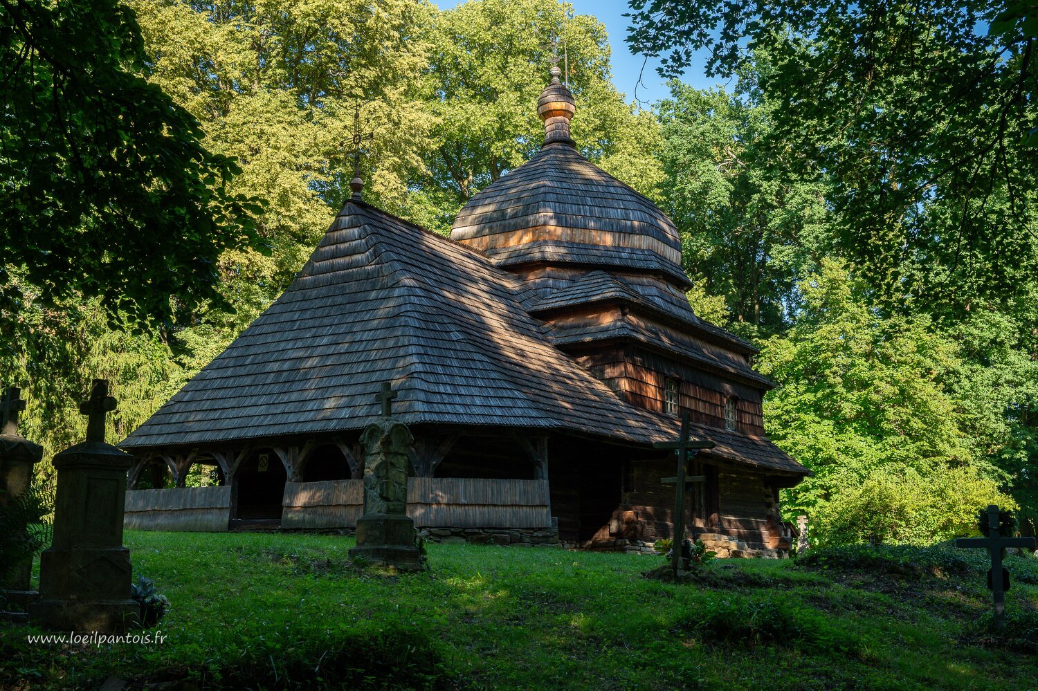 Ulucz, église orthodoxe de l'ascension du seigneur (1659): l'église est précédée d'un large avant porche couvert