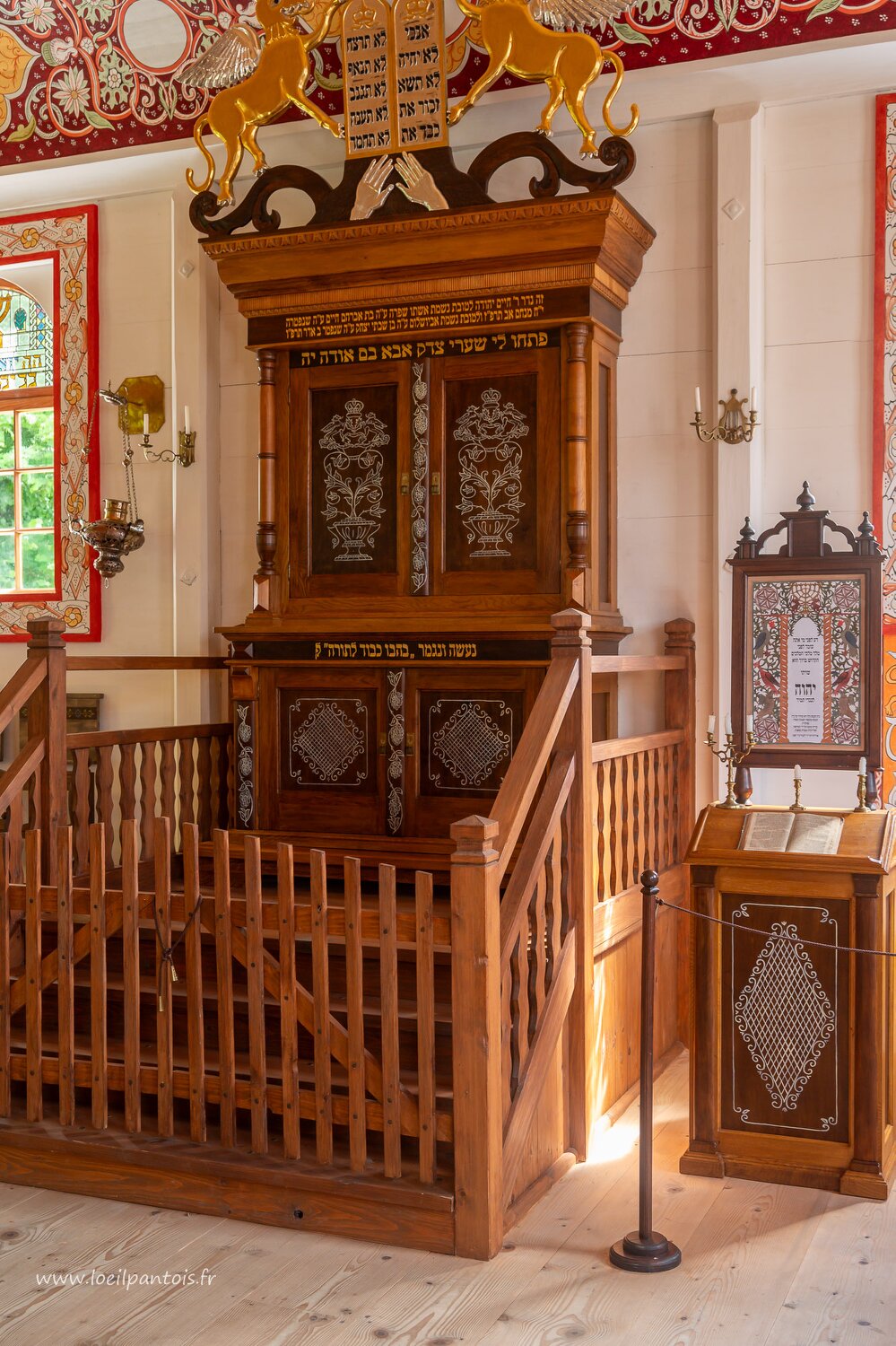Musée d'architecture populaire de Sanok, synagogue de Polianec, reconstruite, l'arche sainte qui contient les rouleaux de la torah