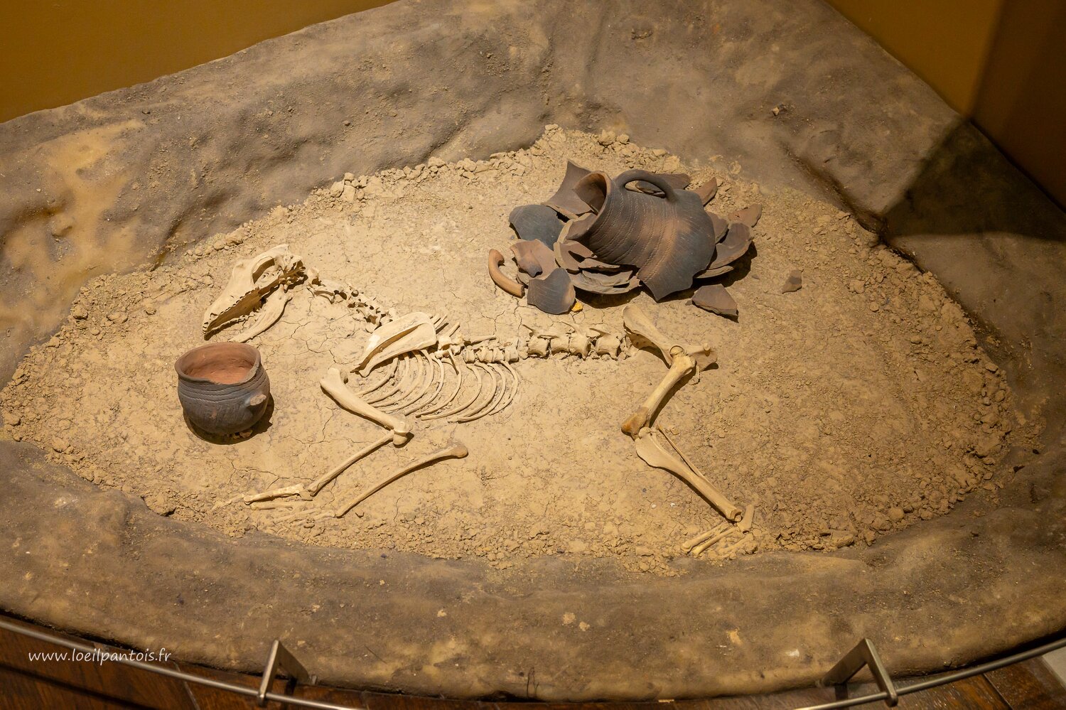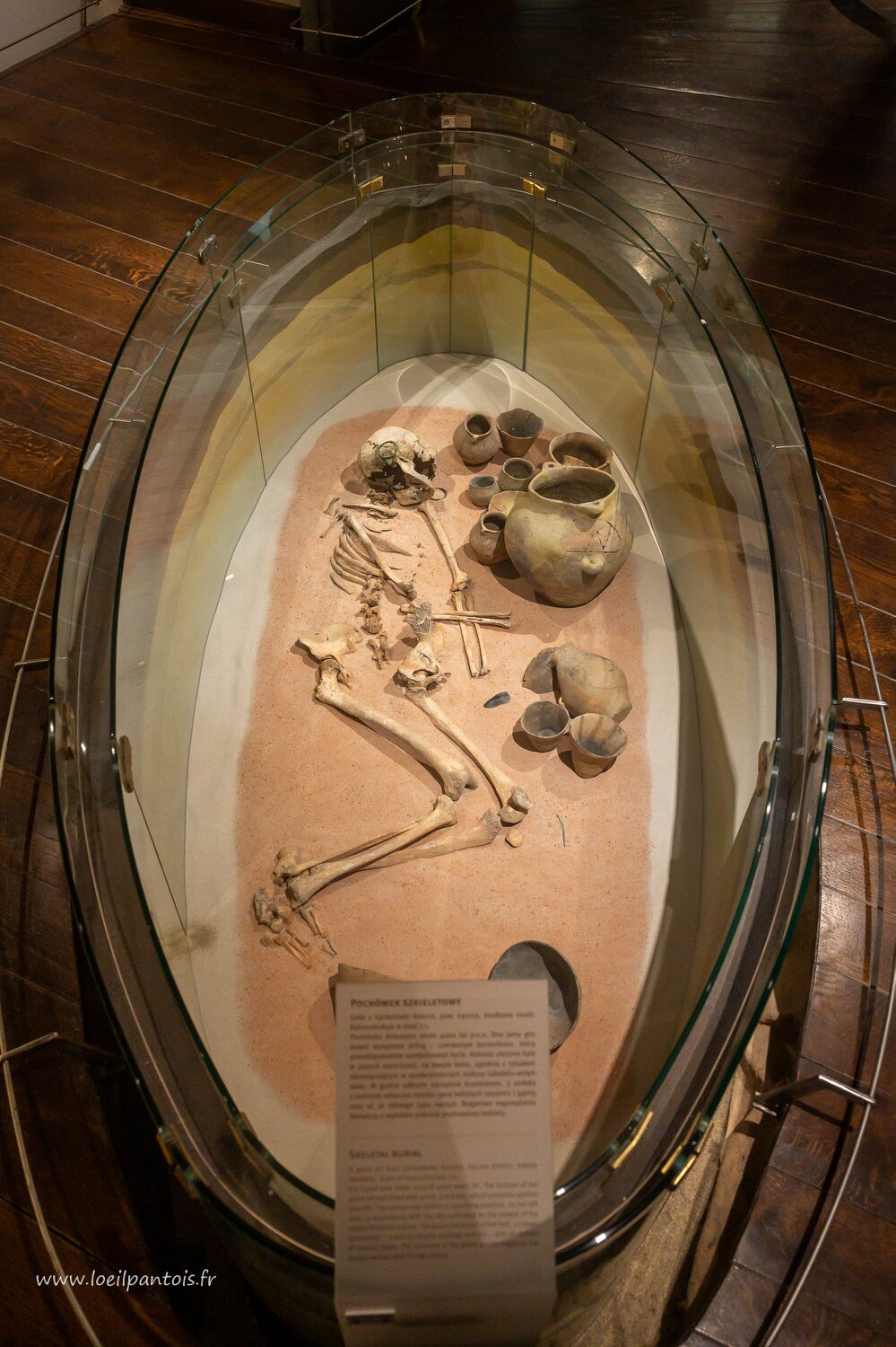 Chateau de Lublin, Fosse funéraire d'une femme du néolithique (env 4000 av JC) provenant des environs de Lublin. L'ocre au fond de la fosse symbolise la vie et…