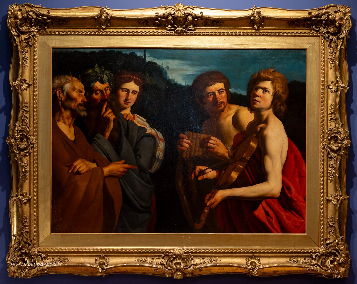 Jugement de Midas (Midas juge un concours de musique entre Pan et Apollon qui lui vaudra des oreilles d'âne), Gerrit van Honhorst (1592-1656), peintre…