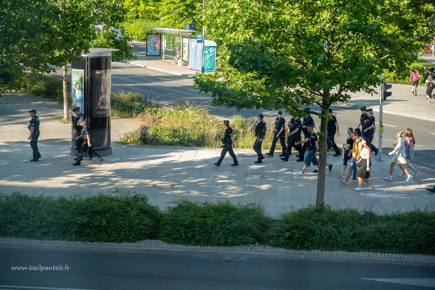 Fin, de la gay pride. de très nombreuses troupes encadraient la manifestation, sans doute autant pour la contenir que pour la protéger d'opposants virulents