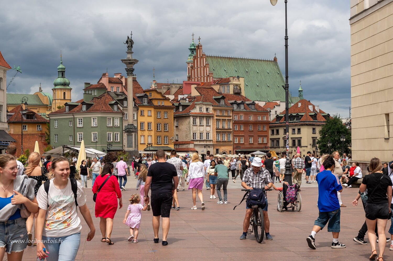 Place du chateau avec, à droite le chateau royal (reconstruit à partir de 1971) et, à gauche la Colonne de Sigismond III élevée en 1644. Cette place, très…