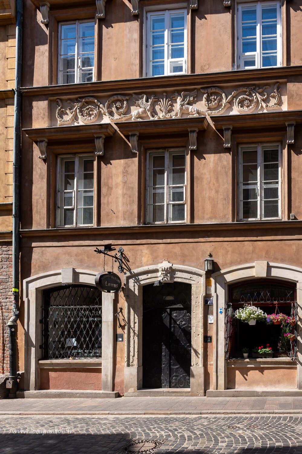 7 rue Nowomiejska (rue de la nouvelle ville), construite en 1531, reconstruite en 1630, 1815, détruite en 1944, reconstruite en 1954