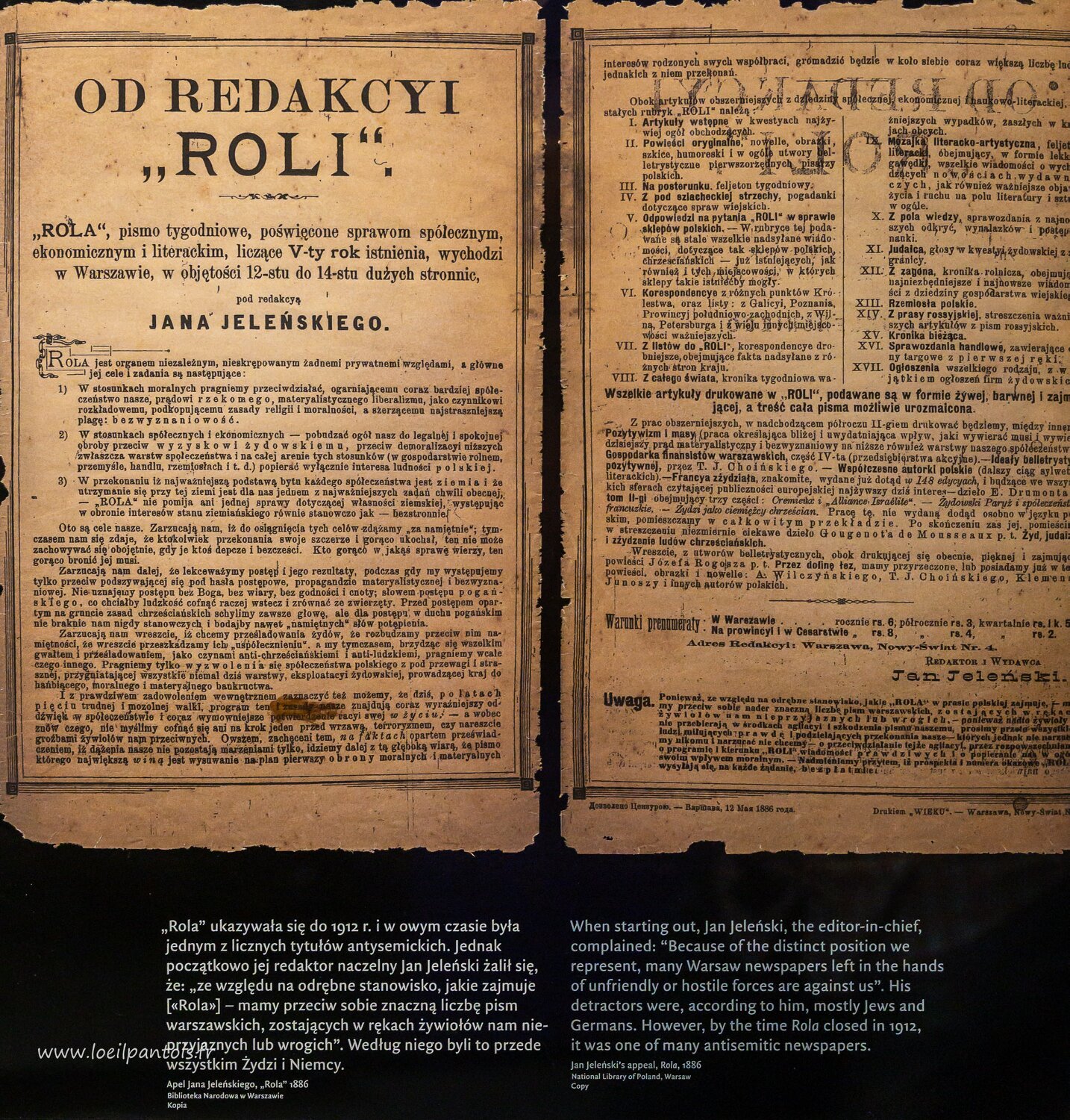 Musée de l'histoire des juifs polonais, Rola, magazine hebdomadaire antisémite (1883-1912) de Jan Jelenski (1845-1909) dont le but officiel était "Encourager…