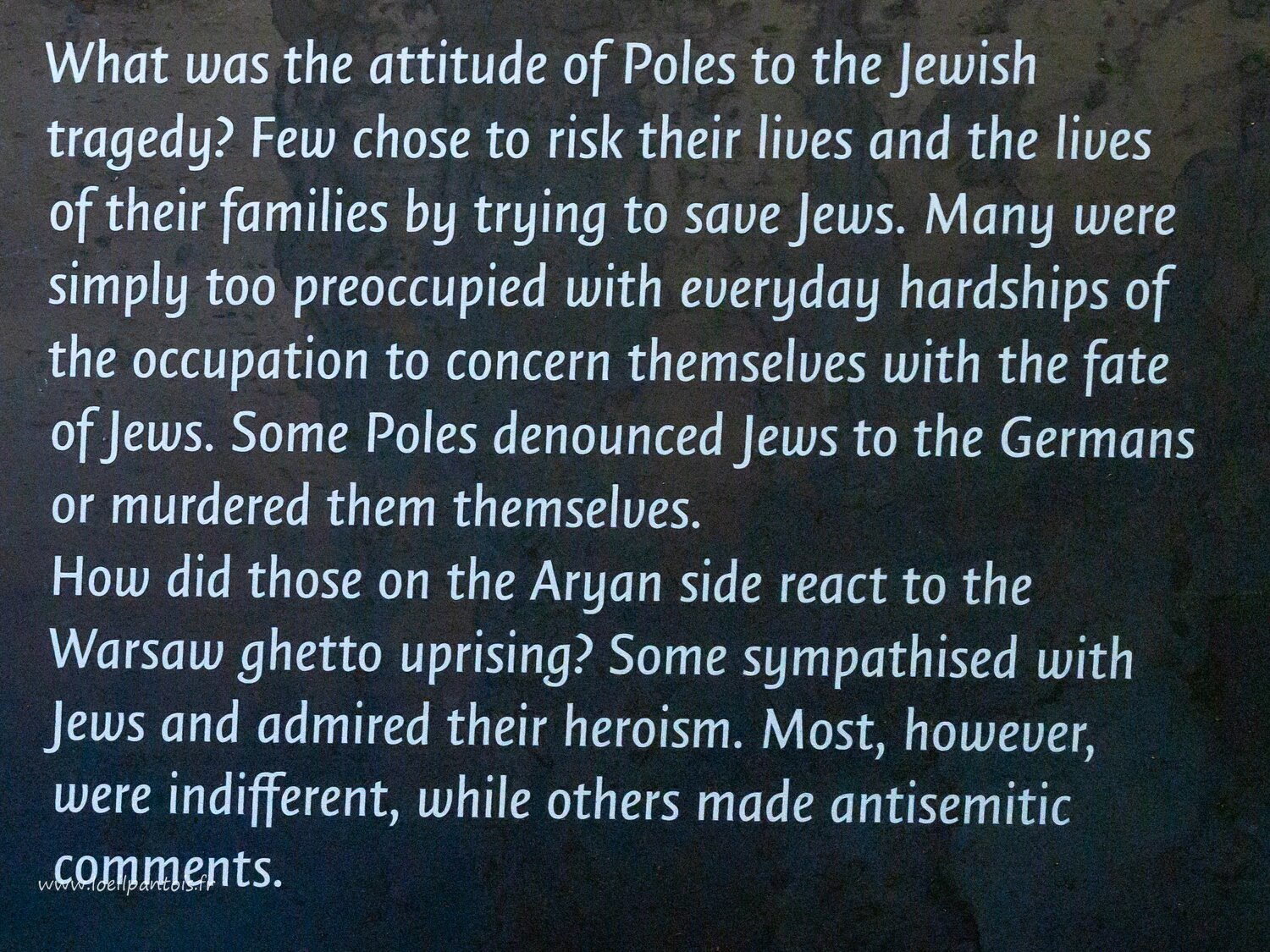 Musée de l'histoire des juifs polonais, commentaire sur l'attitude des polonais devant le traitement des juifs