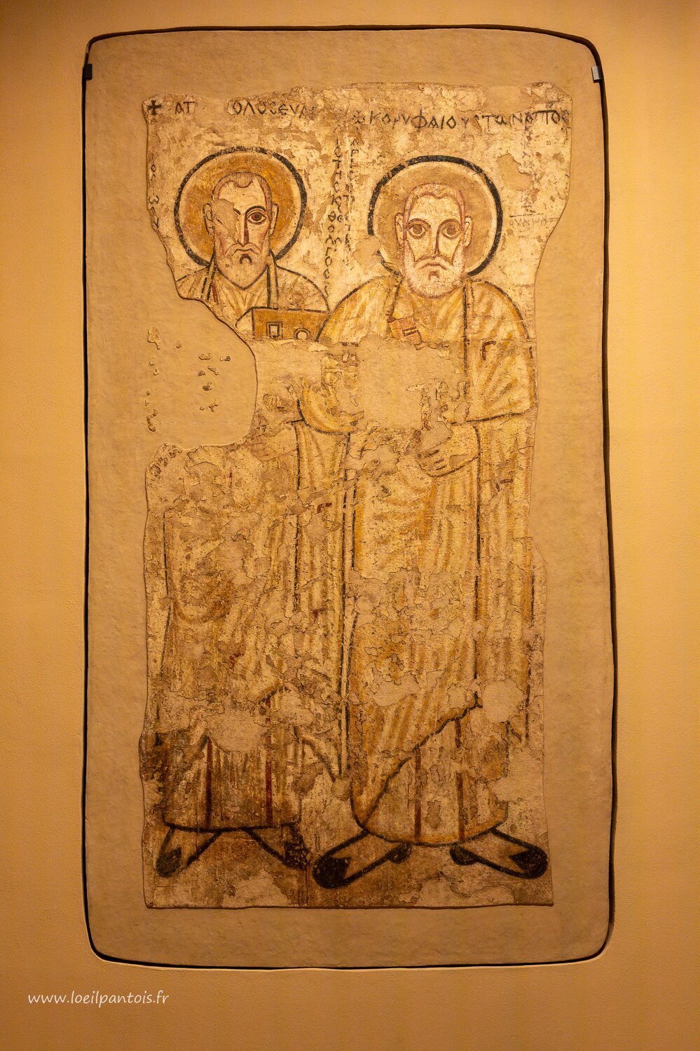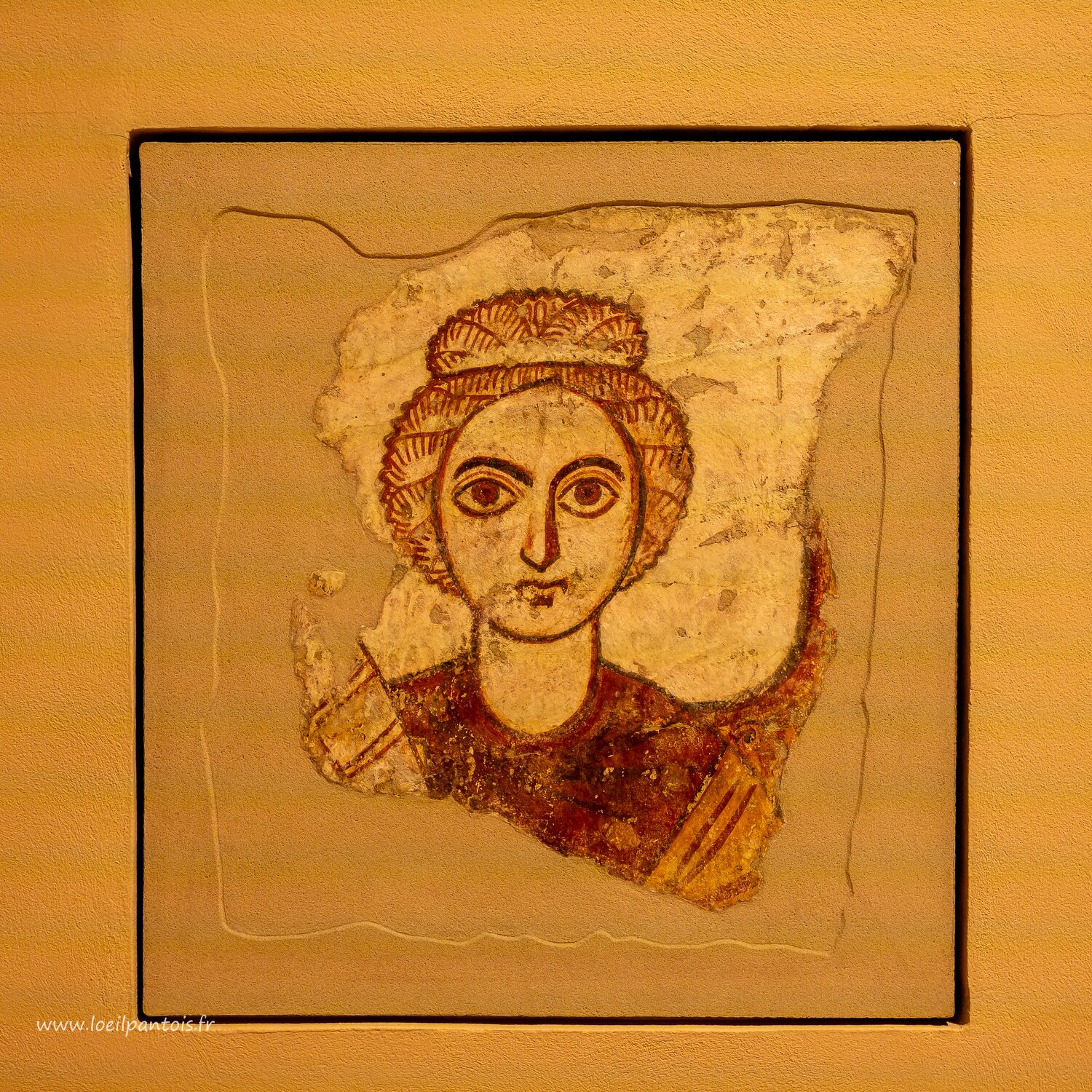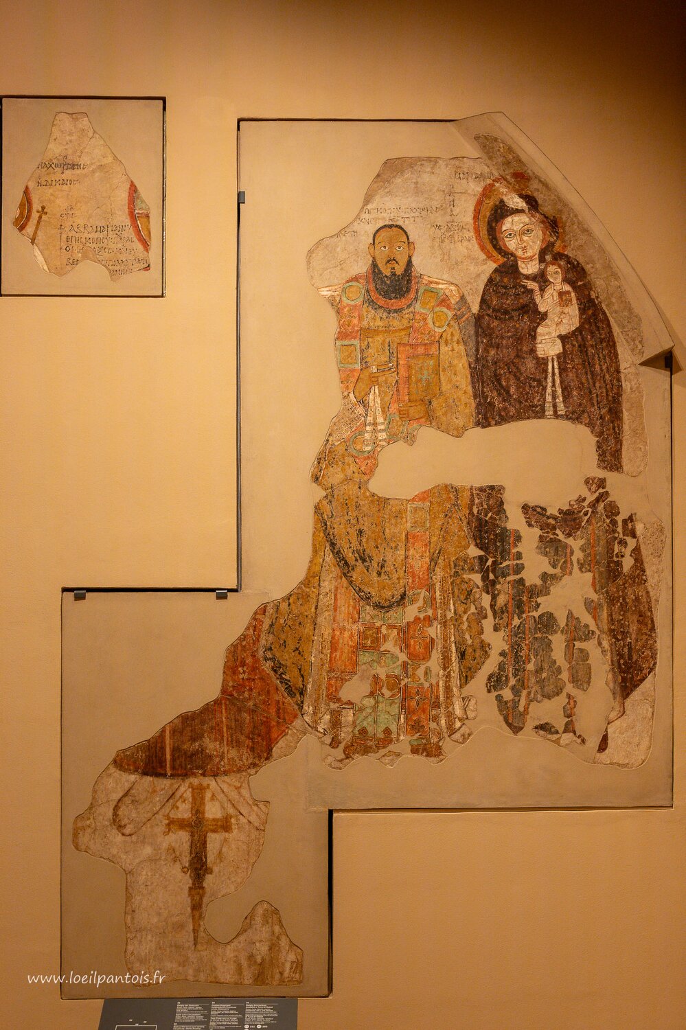 Musée national de Varsovie, fouilles de Faras, L'évêque Marianos protégé par le christ et la Vierge à l'enfant, XIe s