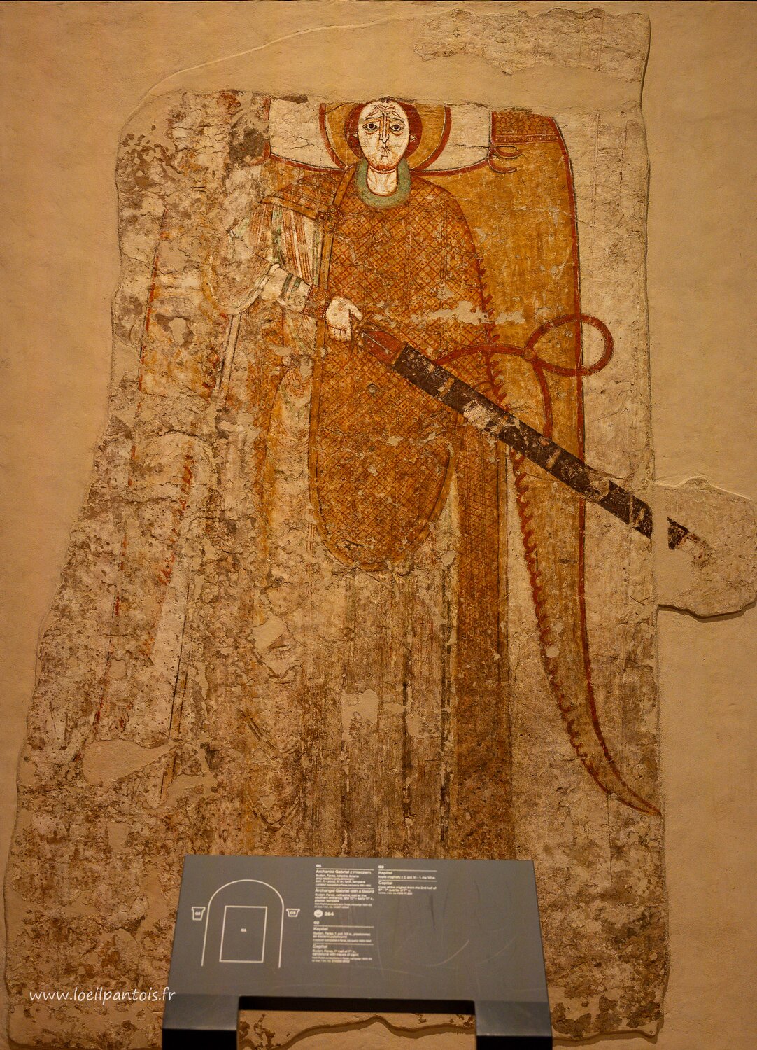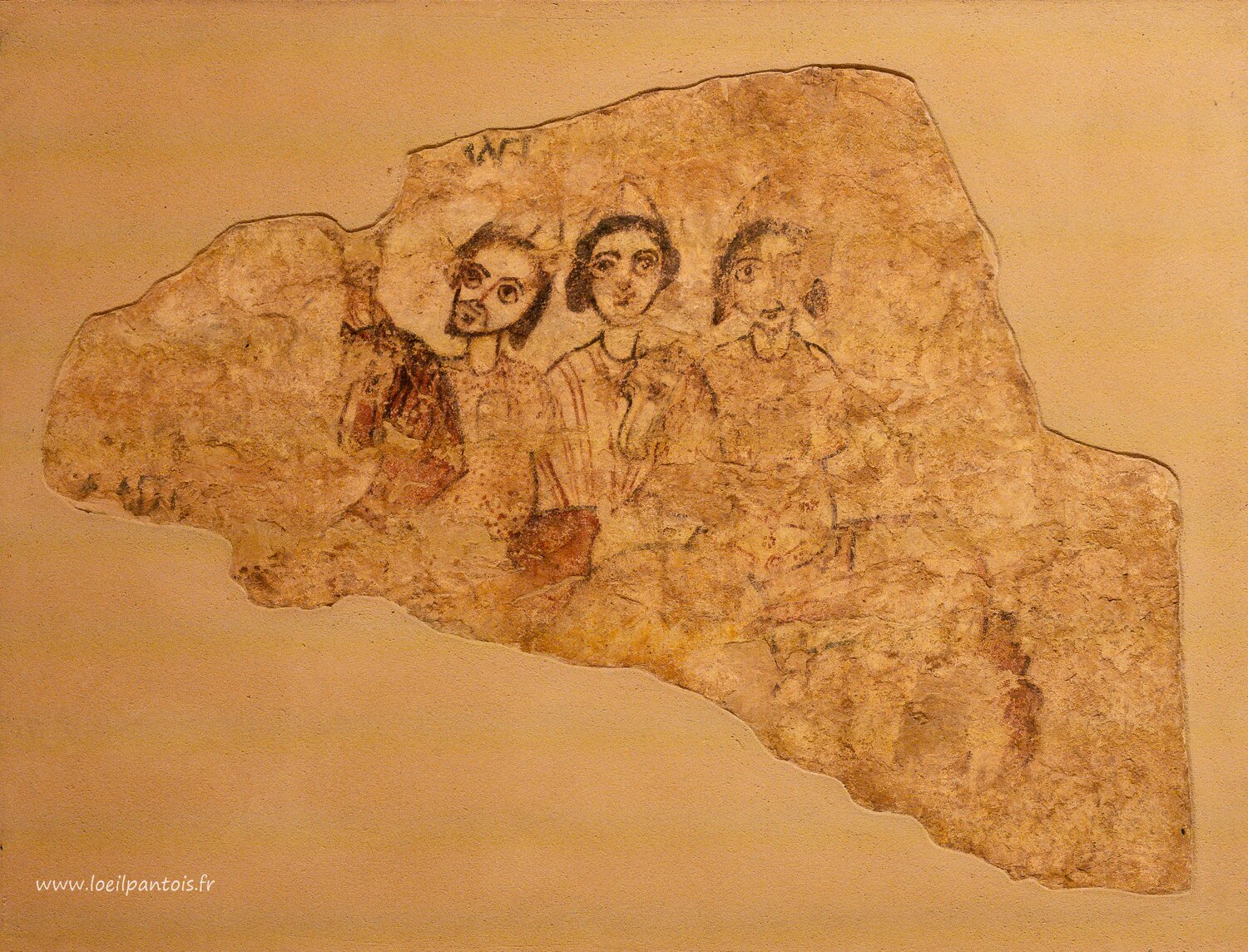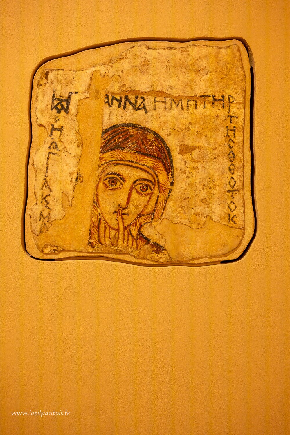 Musée national de Varsovie, fouilles de Faras, L'évêque Marianos protégé par le christ et la Vierge à l'enfant, XIe s