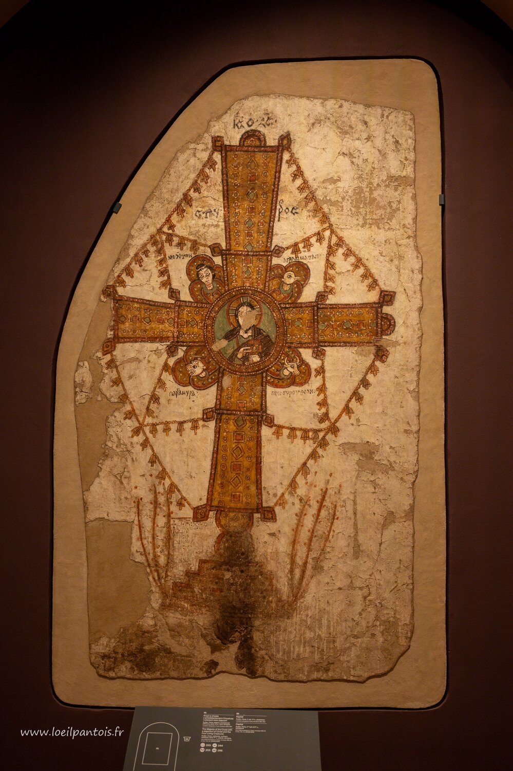 Musée national de Varsovie, fouilles de Faras, La Croix en majesté avec le Christ et les 4 types d'êtres vivants, XIe s