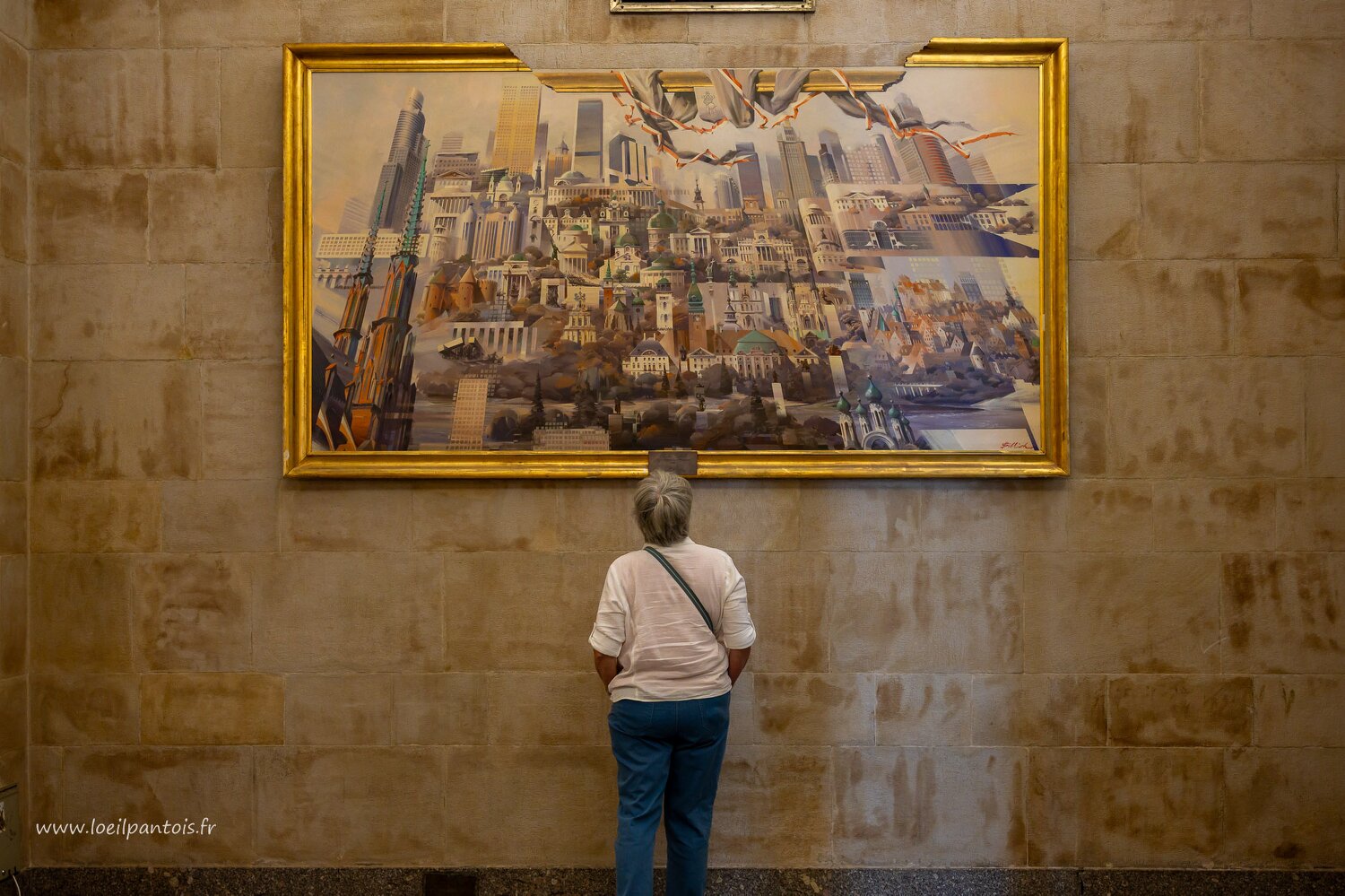 Pälais de la culture et de la science: hall d'entrée:Ma Varsovie subconsciente, Charles Billich (1934- ) peintre australien d'origine croate, 1998