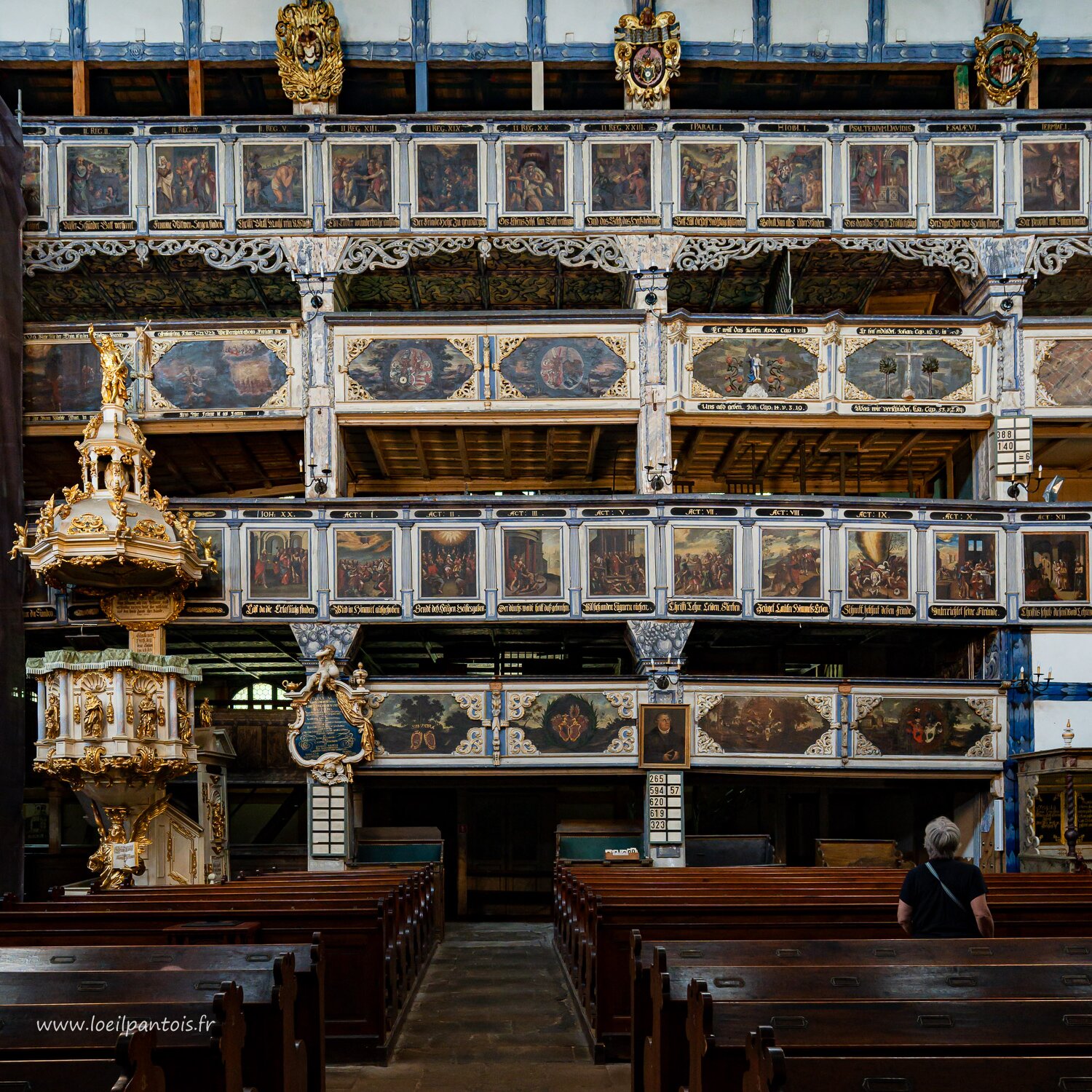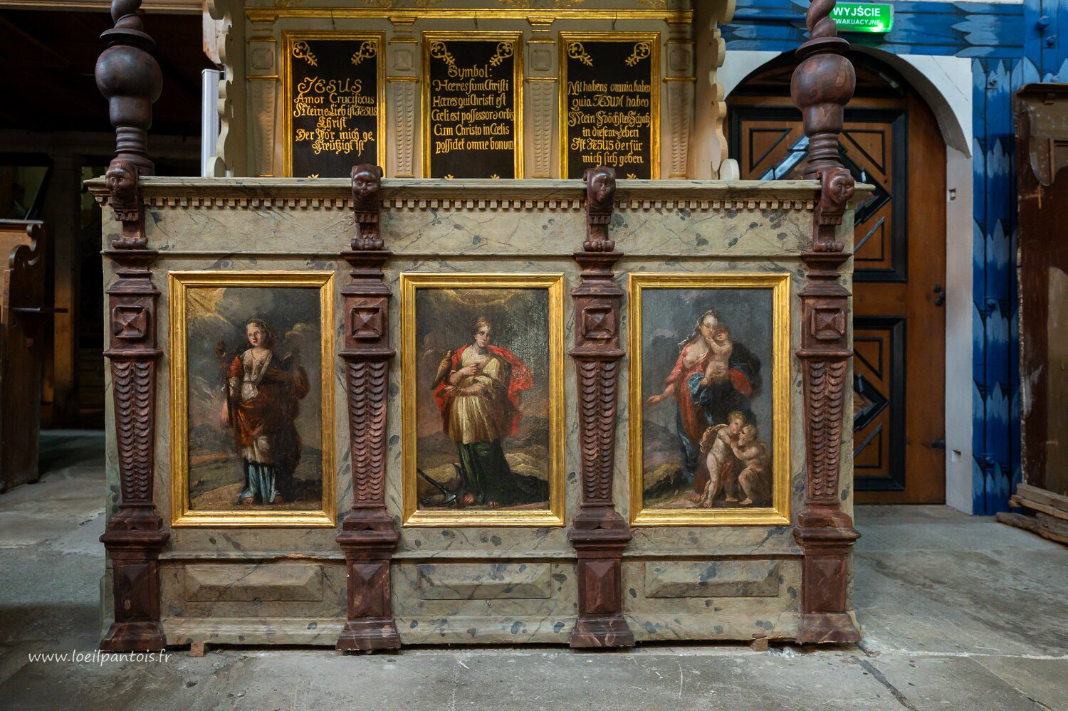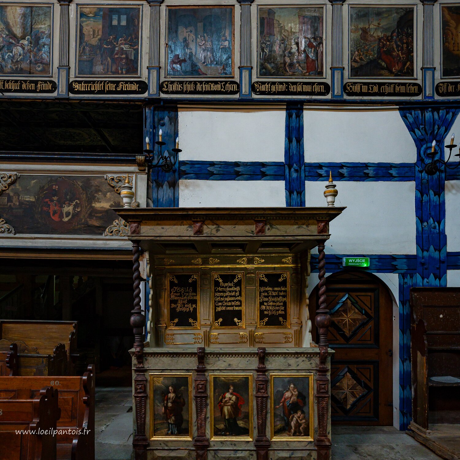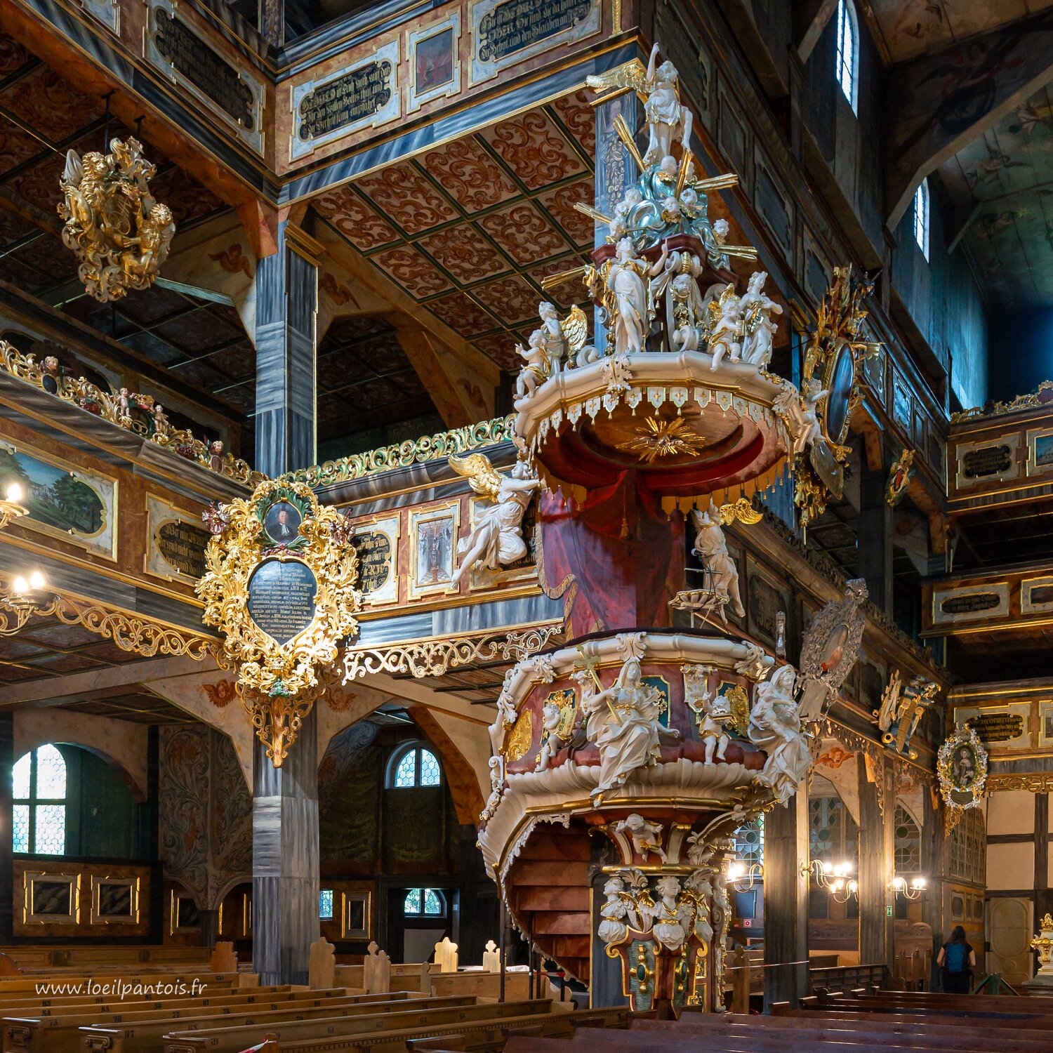 Eglise de Swidnica, Chaire commandée au même charpentier que l'autel par un autre fidèle, consacrée en 1729. Comme la plupart des chaires de cette région, elle…