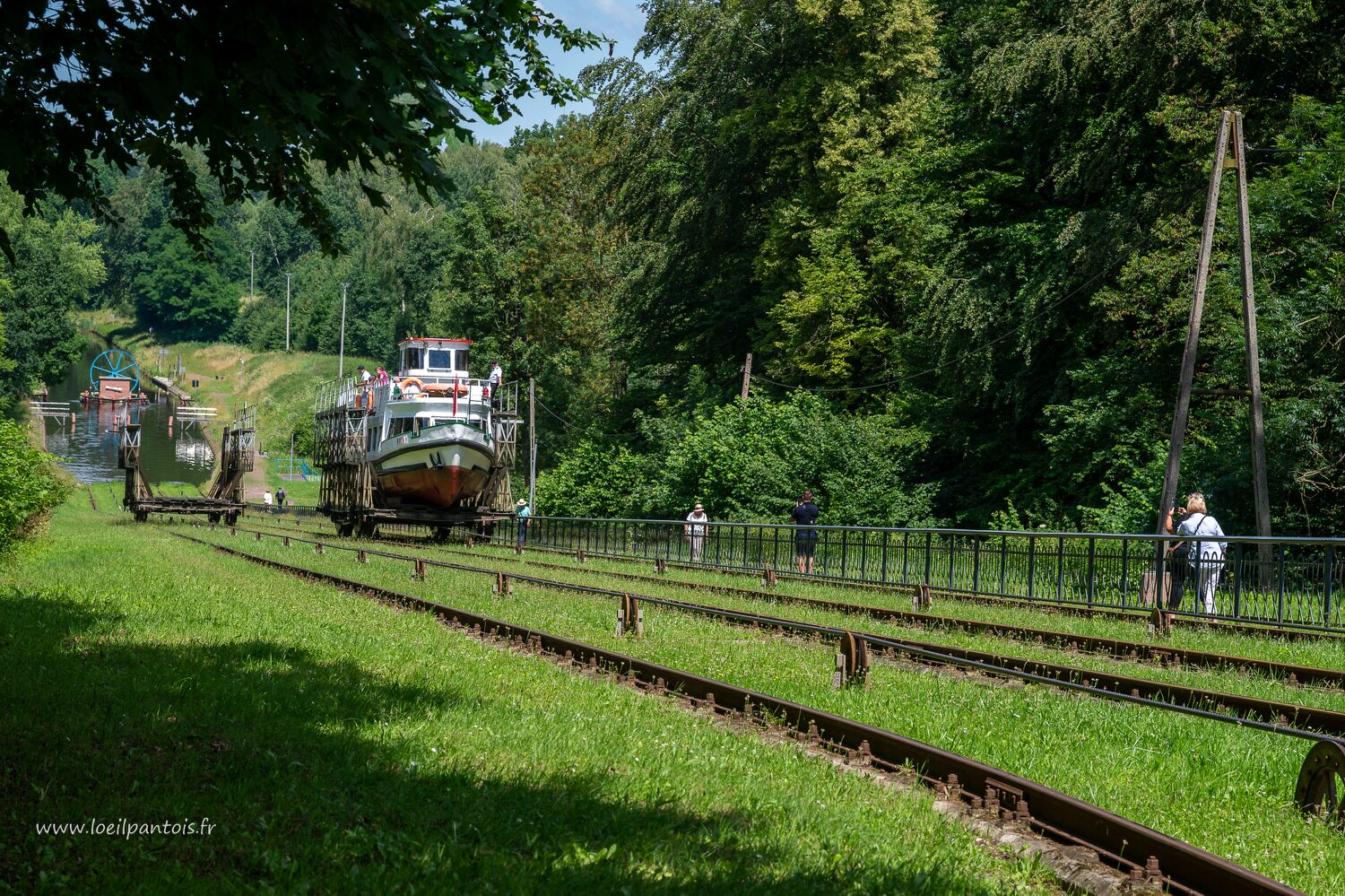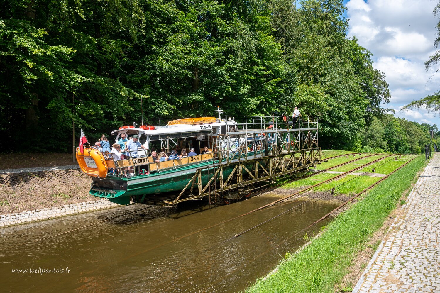 Canal d'Elblag, cale de Pochylnia Jelenie. Le canal est surtout connu par ses plans inclinés qui remplacent les écluses en économisant énormément d'eau…