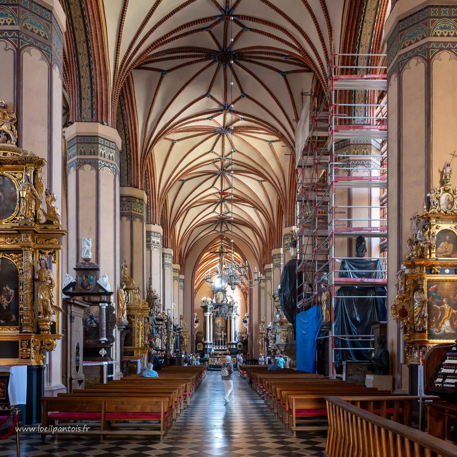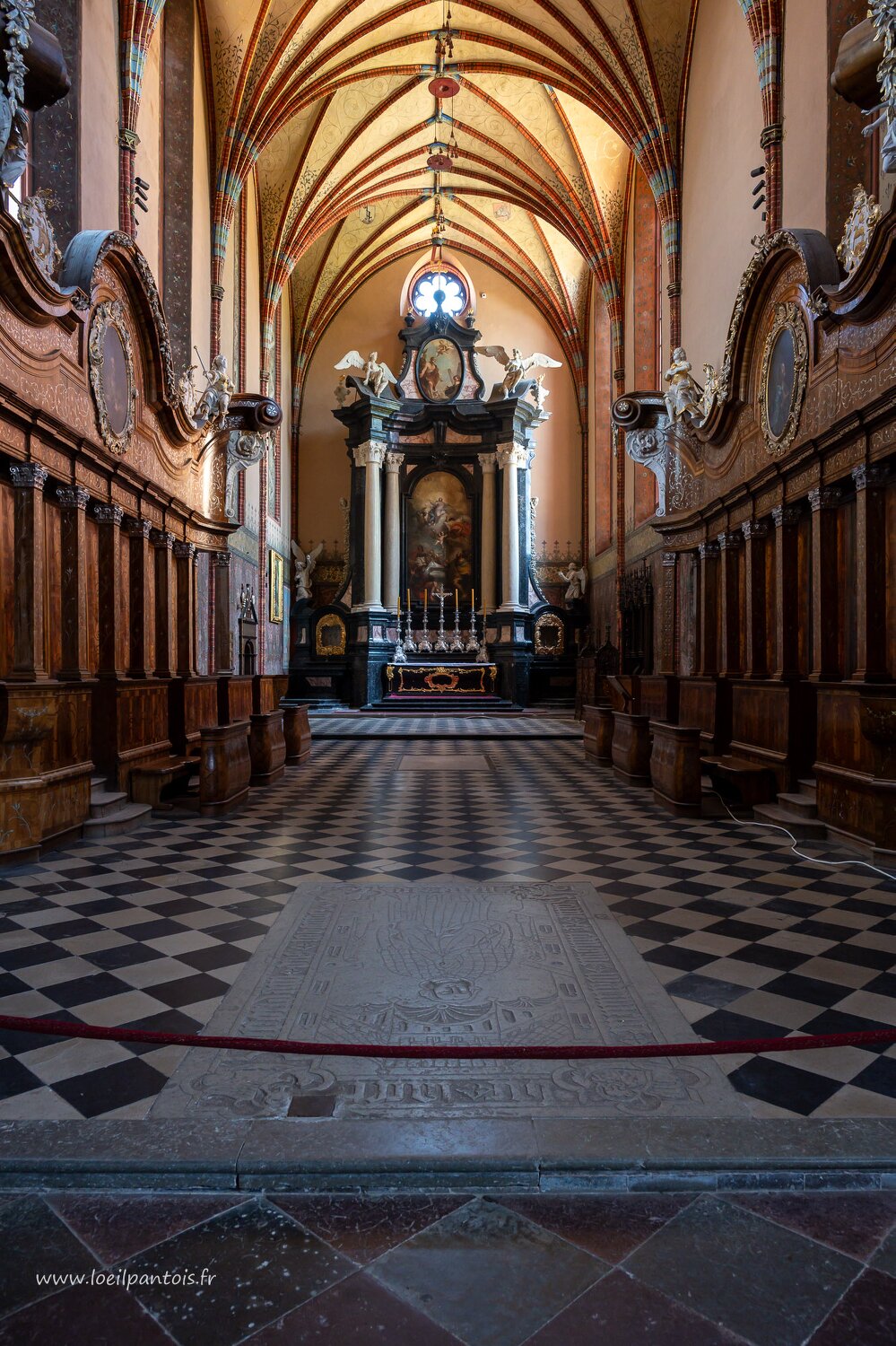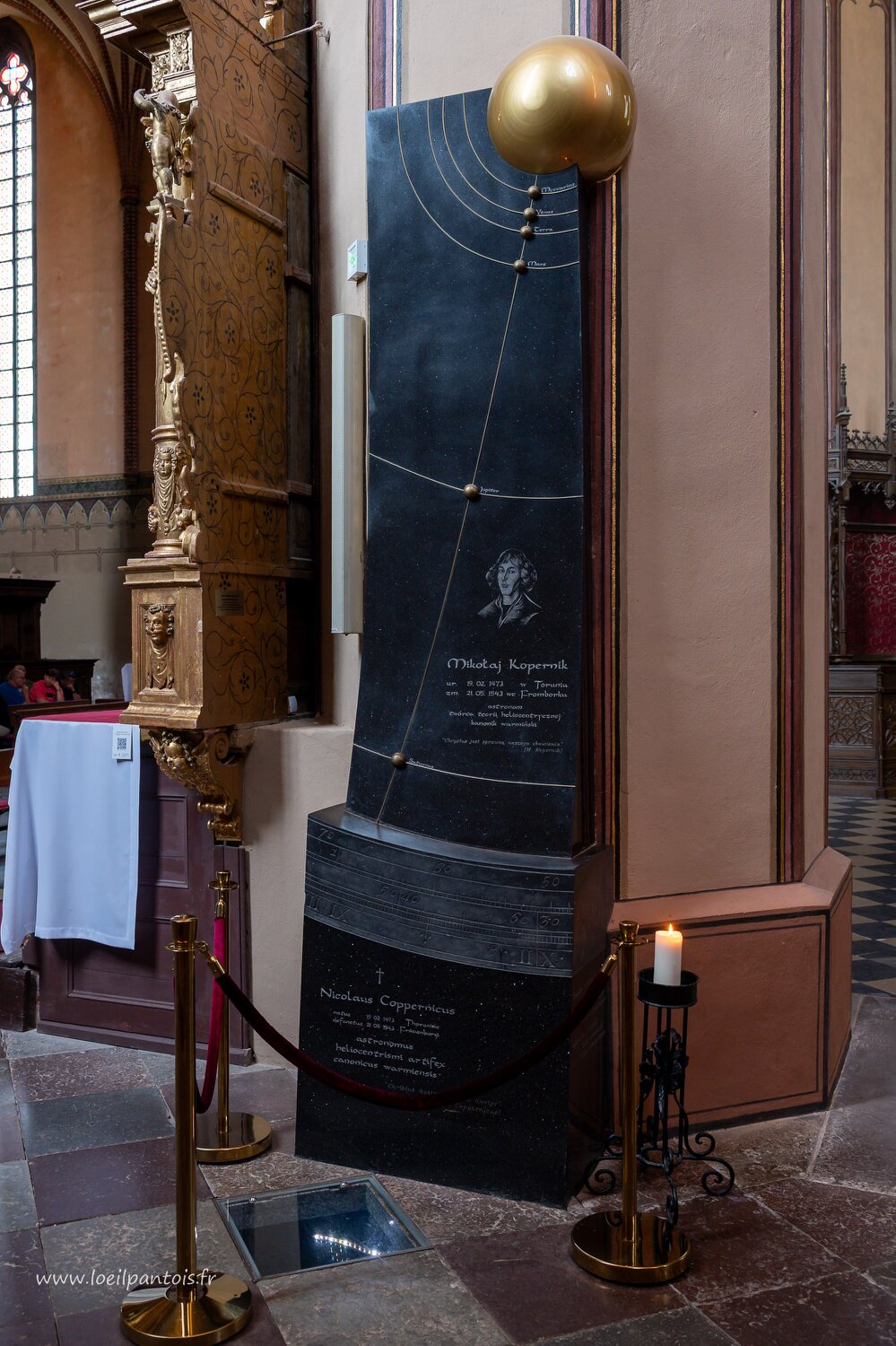 Cathédrale de l'Assomption-et-Saint-André de Frombork (XIVe s), tombe de Nicolas Copernic, construite en 2010
