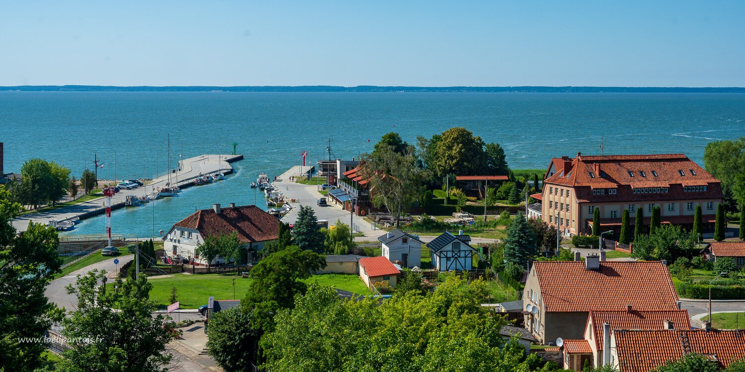 Vue sur la lagune de la Vistule depuis le chateau d'eau de Frombork On aperçoit au loin la flèche de la Vistule qui sépare la lagune de la mer baltique