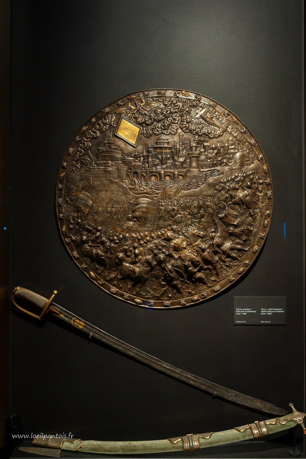 Musée des princes Czartoryski, bouclier de présage du roi Jean III Sobieski (1629-1696), vainqueur des turcs devant Vienne en 1683 mettant ainsi fin aux…