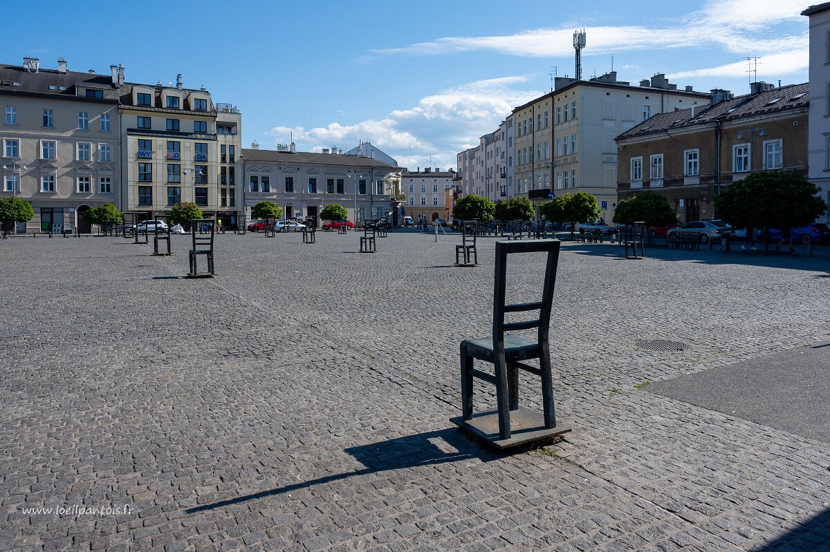 Podgórze (au sud de la Vistule) place des héros du ghetto, mémorial du ghetto juif. Centre du ghetto créé par les nazis en 1941, la place était le lieu…