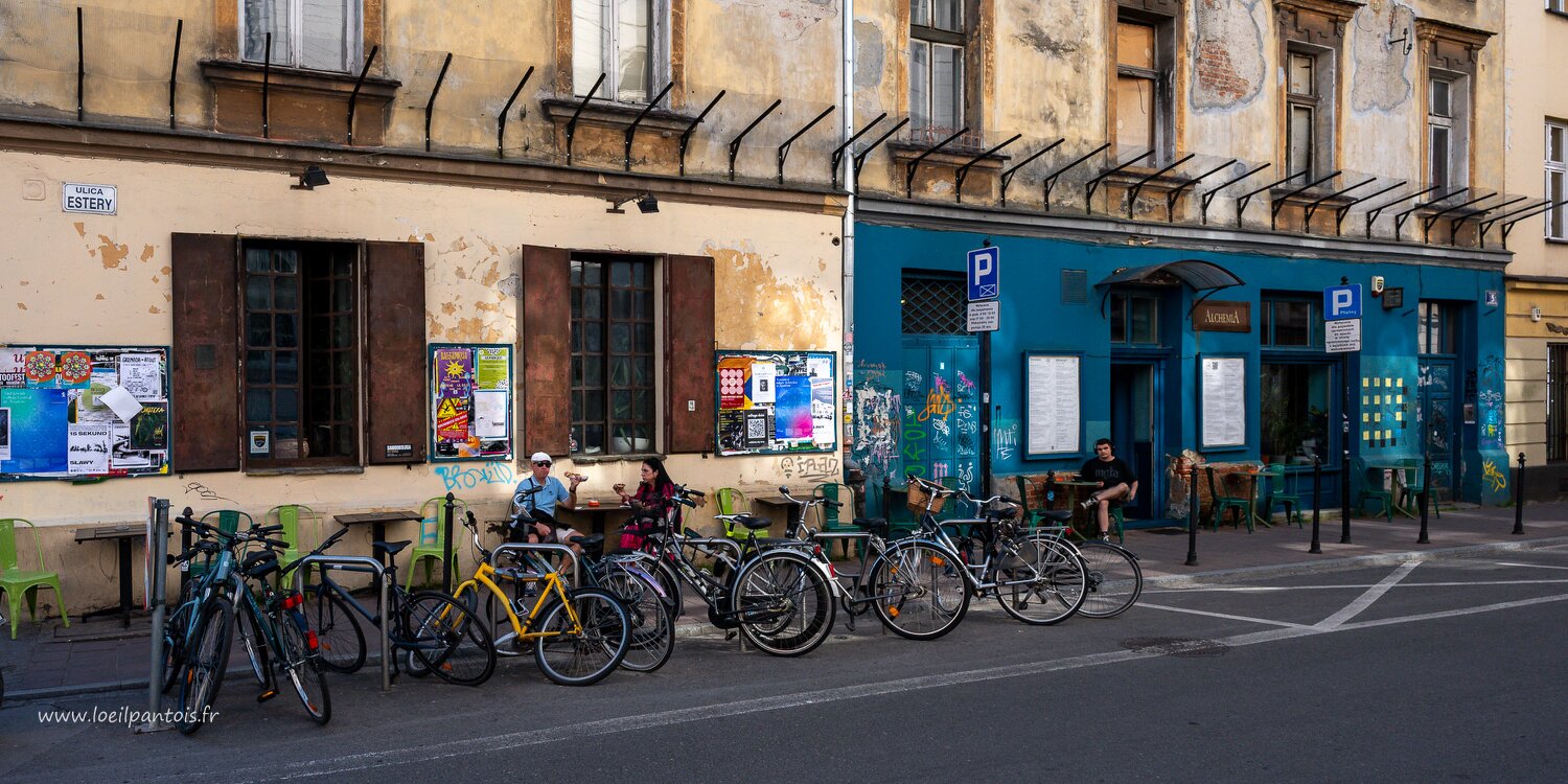 Kazimierz, rue Szeroka, ancienne place du marché du quartier juif du XVe au XIXe s. Elle est aujourd"hui le centre du tourisme dans ce quartier
