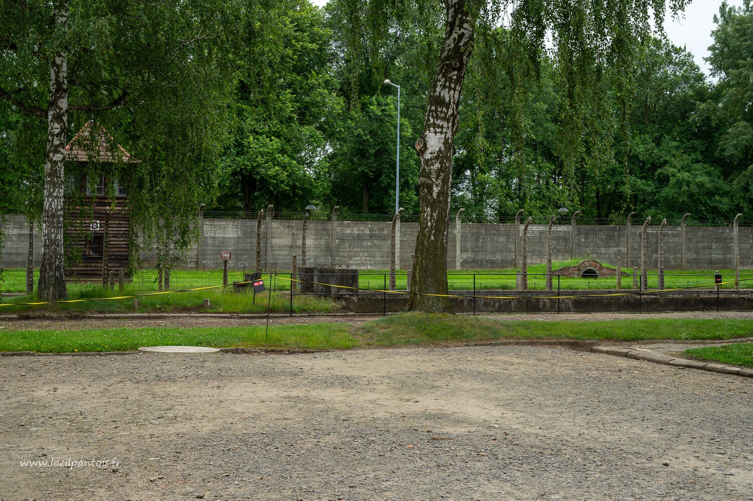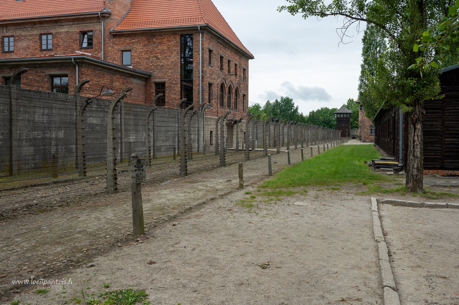 Mémorial d'Auschwitz-Birkenau, camp d'Auschwitz I, les clôtures électrifiées, contre lesquelles certains détenus se suicidaient.
